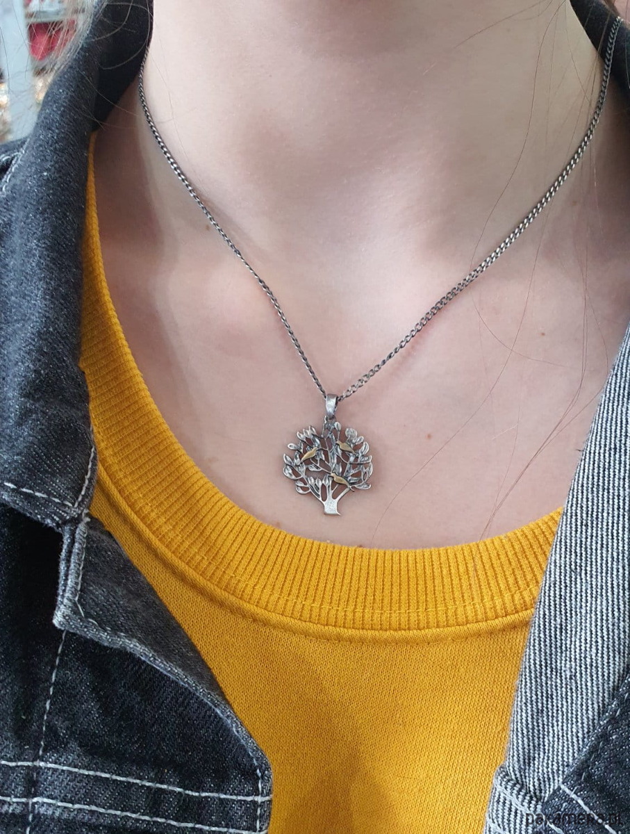 Zawieszka wykonana ze srebra próby 925 w kształcie drzewka szczęścia.