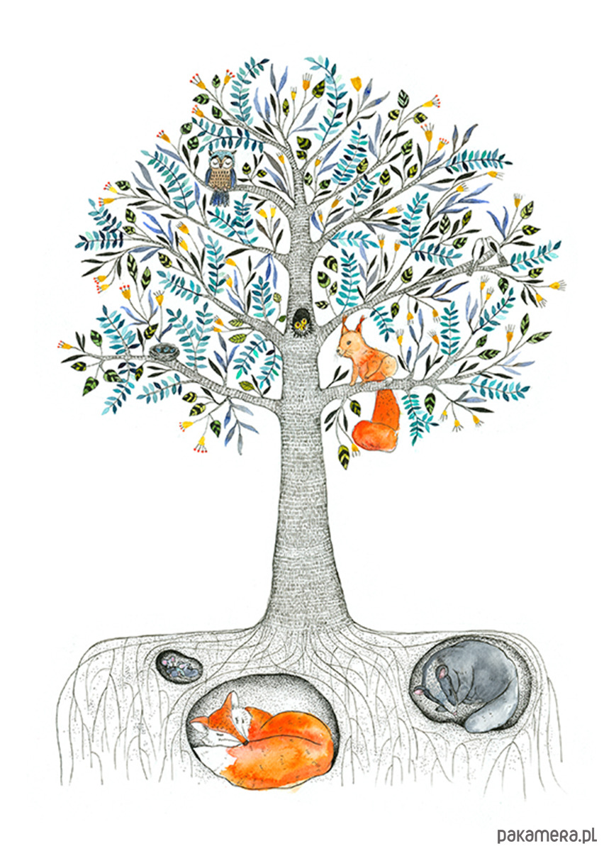 Drzewko ze zwierzątkami, 30x40 cm