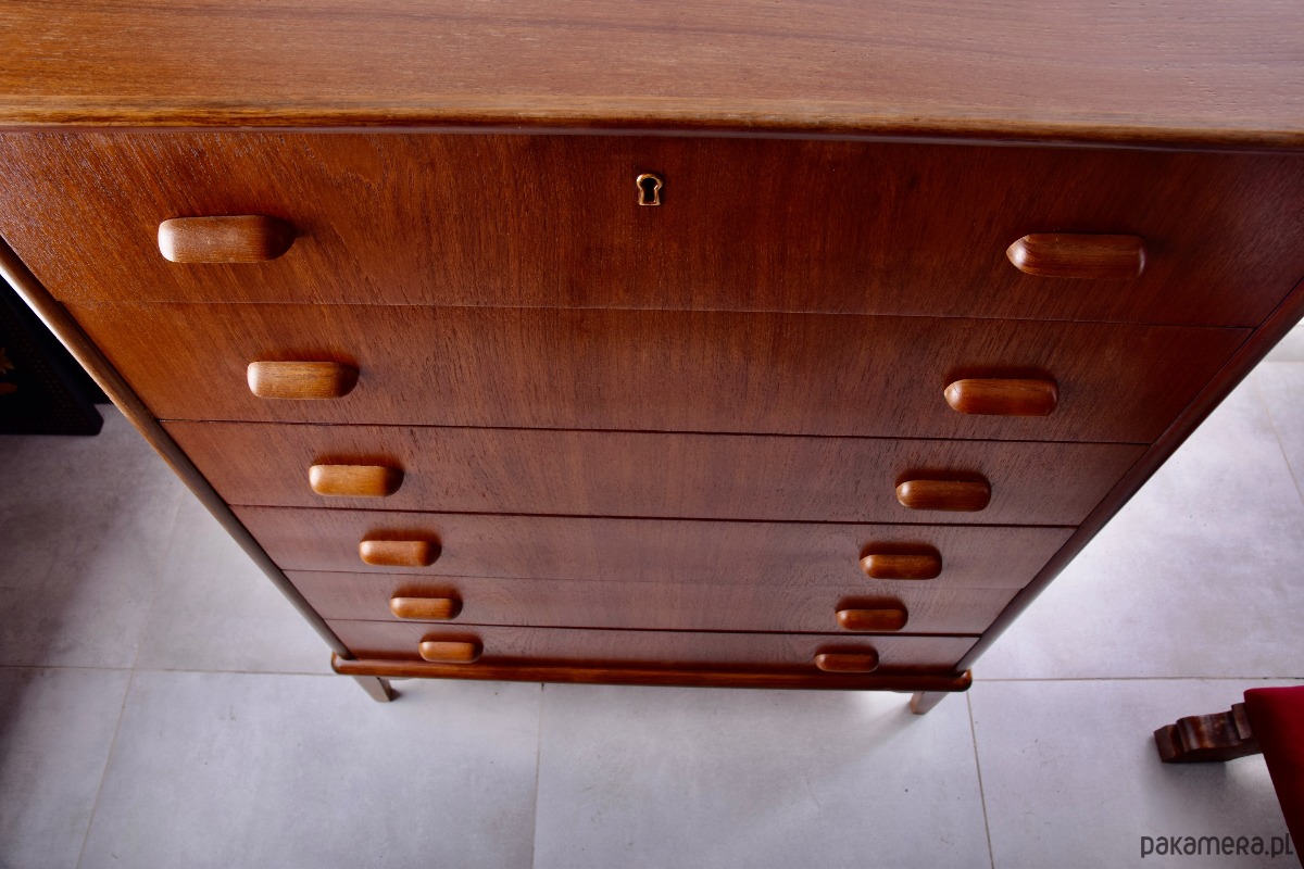 Duńska komoda teak Danish Modern lata 60 6 szuflad 105x80x42cm