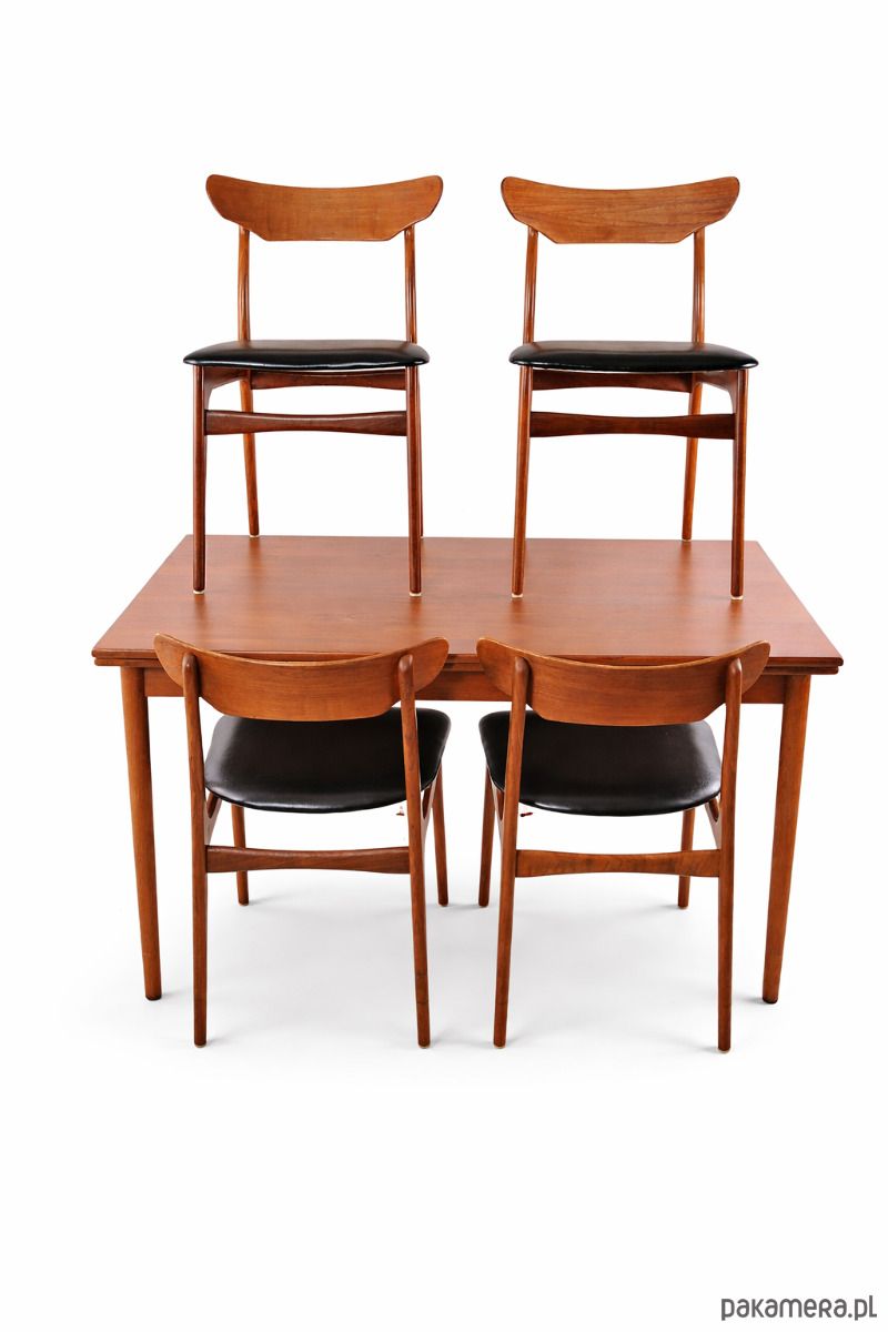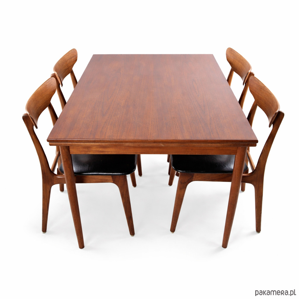 Na sprzedaż autentyczny zestaw jadalniany z okresu duńskiego modernizmu (mid-century), pochodzący z lat 60/70. To przykład klasycznego skandynawskiego wzornictwa – harmonii formy, funkcji i jakości wykonania.