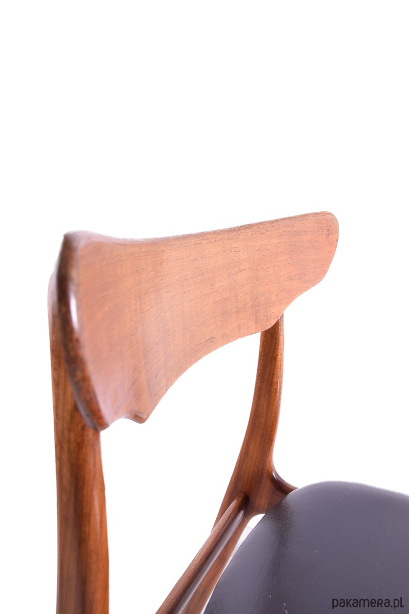Krzesła projektu Elgaard & Schiønning – uznanego duńskiego producenta – doskonale komponują się ze stołem w duchu epoki.