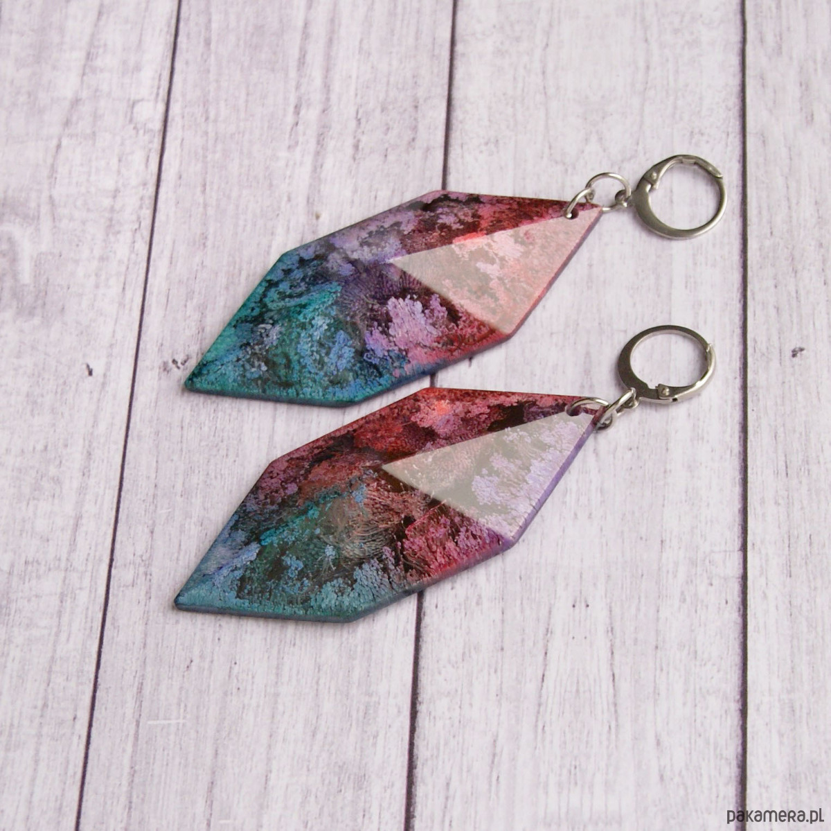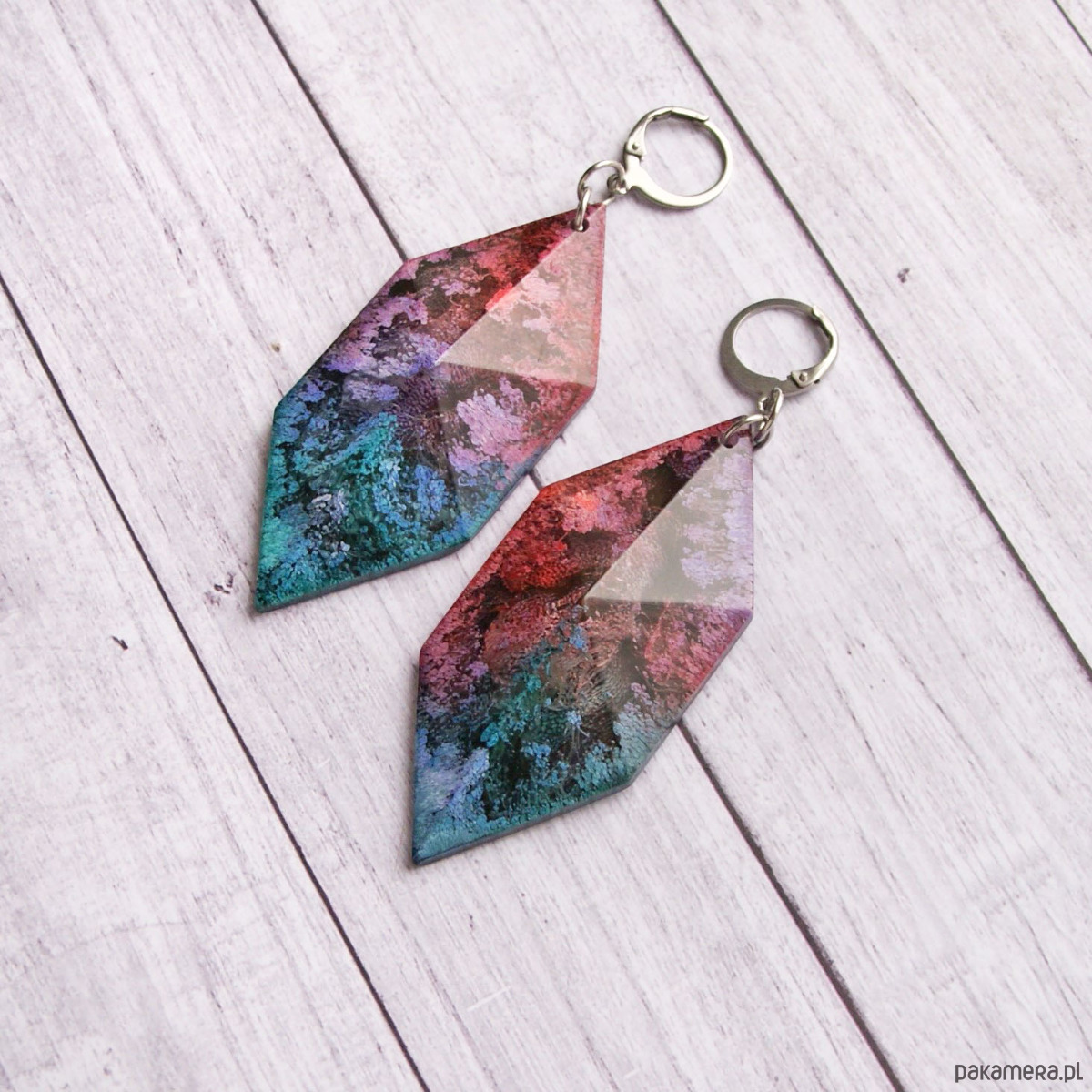 KOLCZYKI WYKONANE Z ŻYWICY. niezwykle soczyste kolory i niesamowite efekty wewnątrz osiągnęłam dzięki użyciu profesjonalnych tuszy alkoholowych najwyższej jakości (spójrz na zbliżenia!)