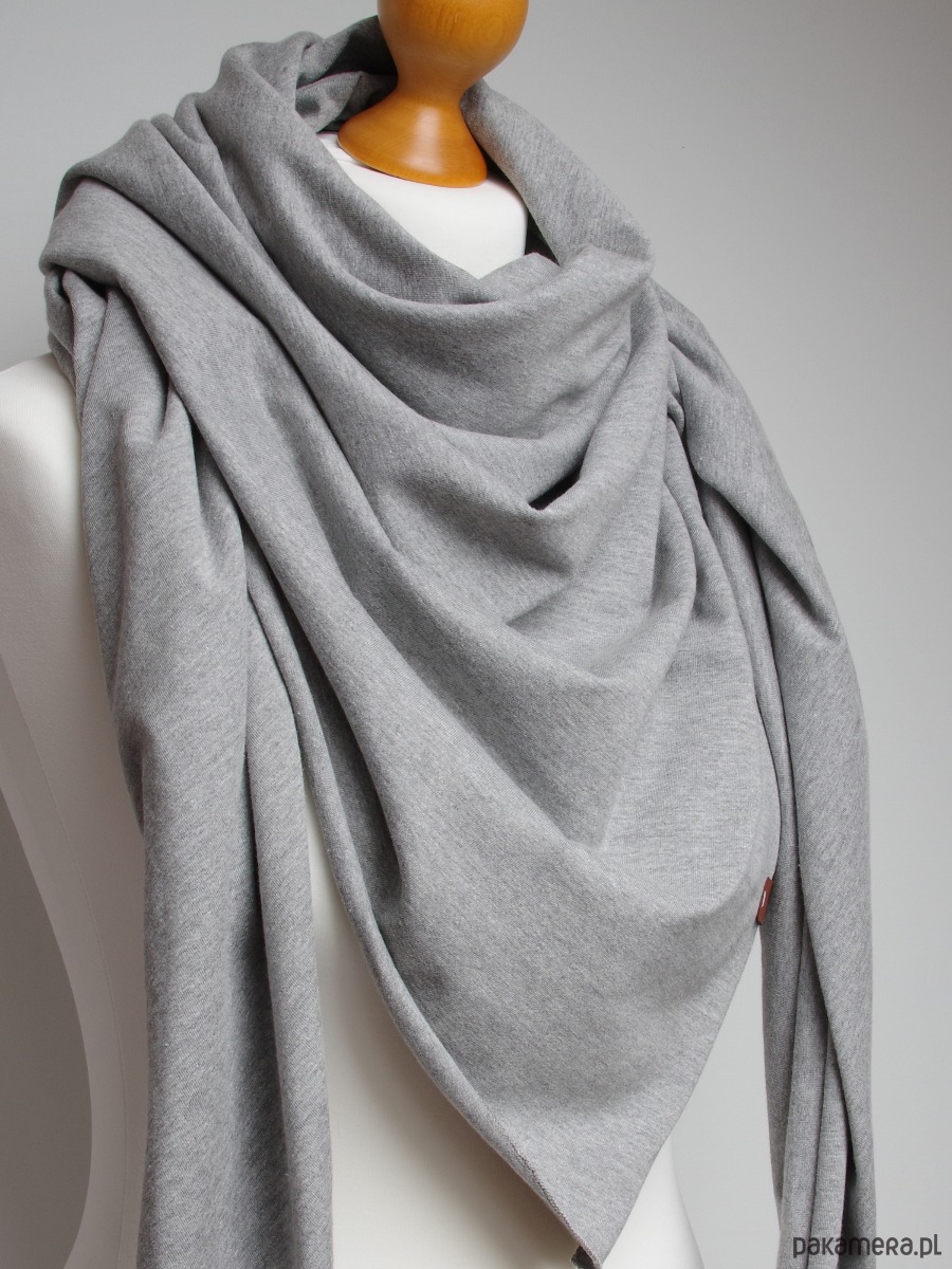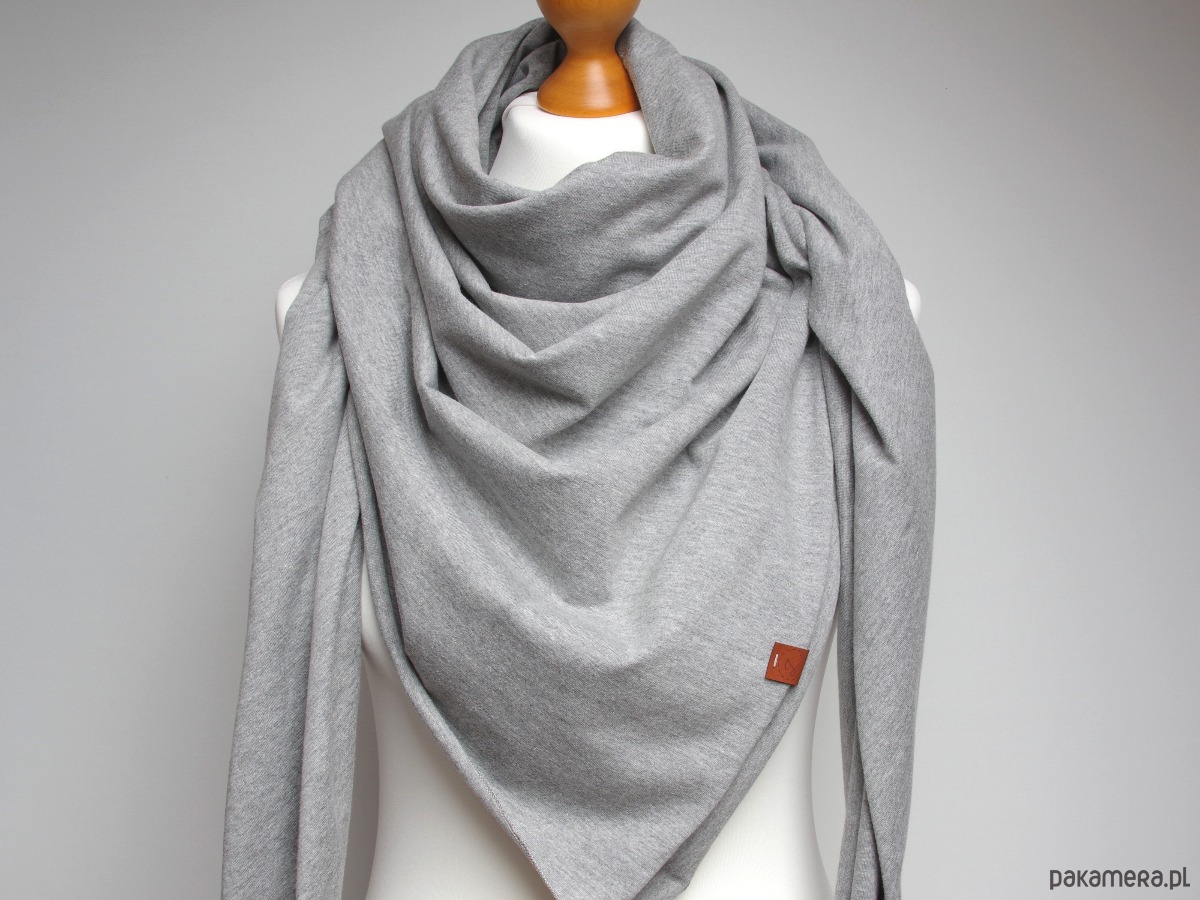 Szara chusta damska z bawełny – duży, miękki szal bawełniany na wiosnę i jesień – uniwersalny szalik handmade