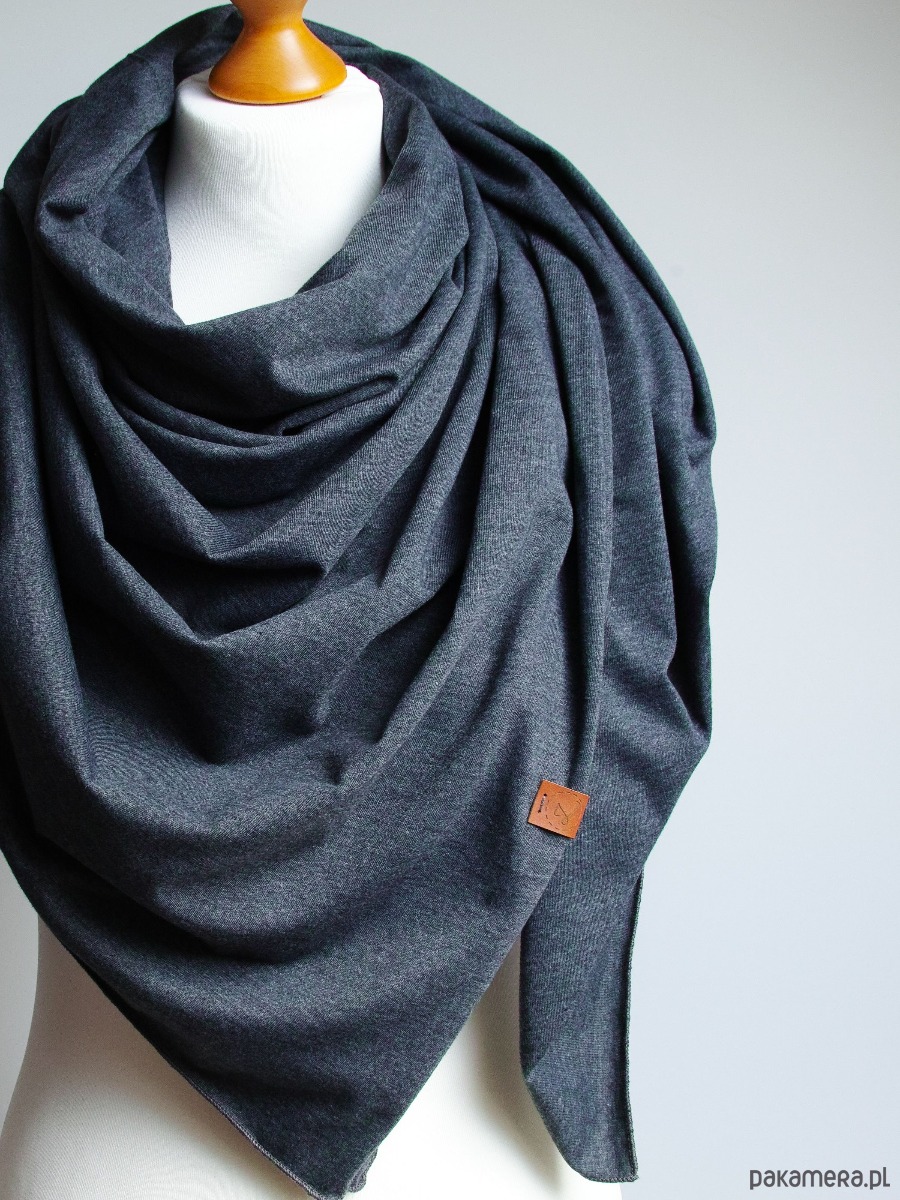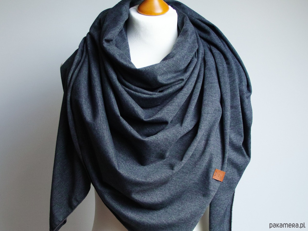 Duża chusta bawełniana w kolorze GRAFITOWYM – miękki szalik damski na każdy sezon.