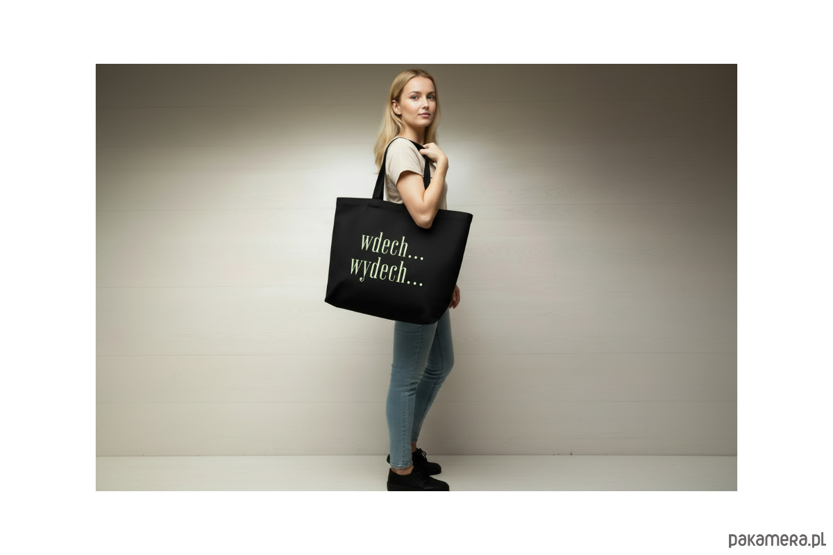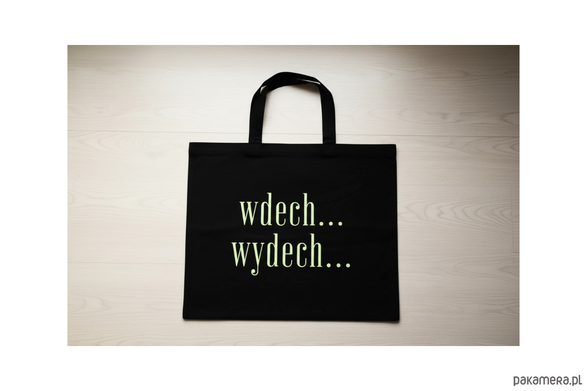 Bardzo duża bawełniana torba czarna z afirmacją WDECH... WYDECH...