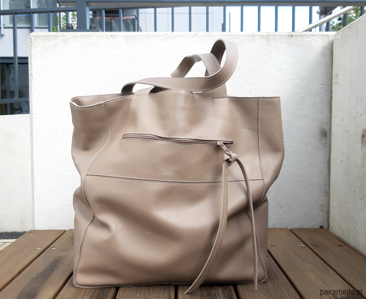 Duża skórzana torba uszyta ze skóry naturalnej. Skóra jest miękka, aksamitna w dotyku, gładka
