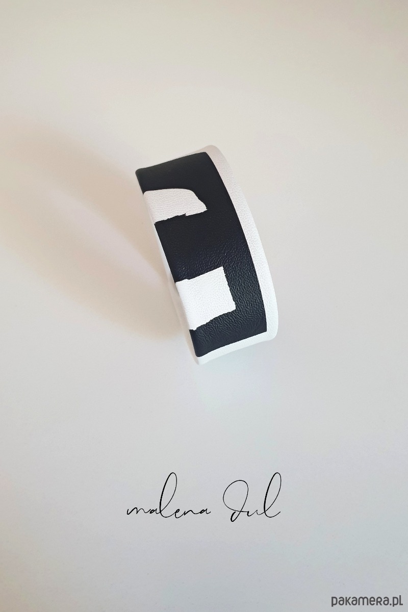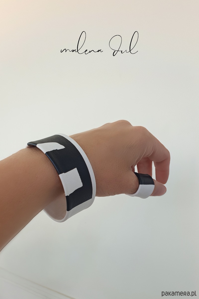 Unikat. Bransoletka - wyjątkowa i oryginalna, wykonane ręcznie. Cudownie miękka skóra delikatnie otula nadgarstek. Piękny i unikatowy dodatek do codziennej jak i wieczorowej stylizacji. Szyta czarną nicią kaletniczą.