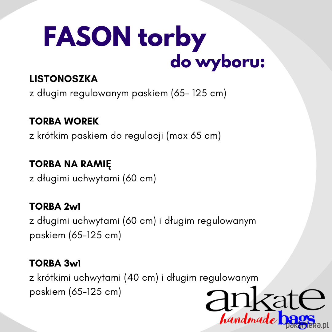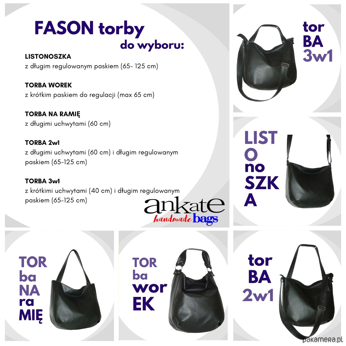 LISTONOSZKA - torba z długim regulowanym paskiem (65-125 cm) do noszenia na ramieniu lub na skos,