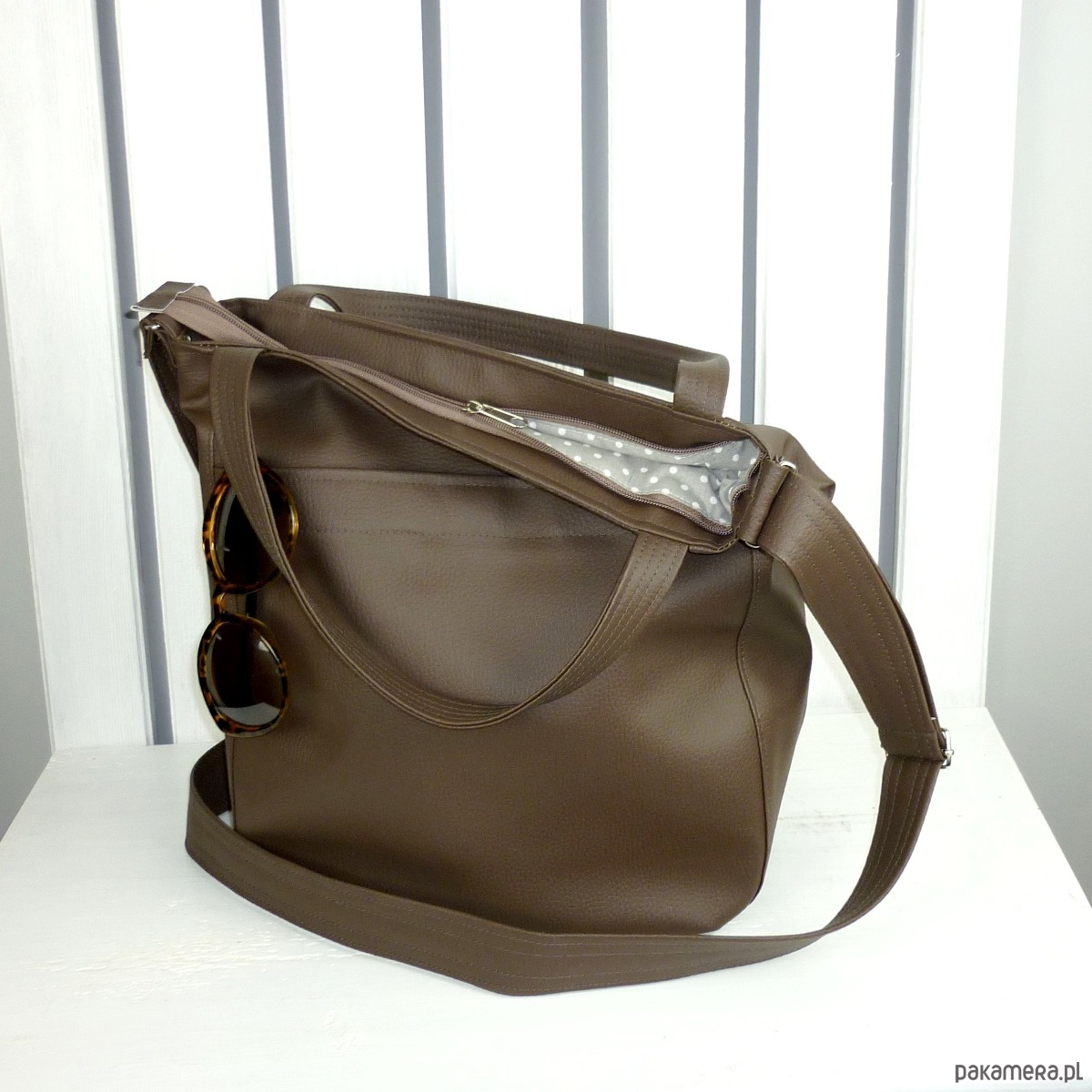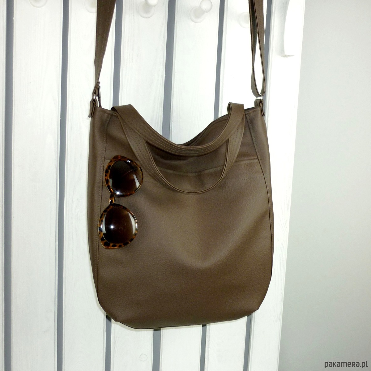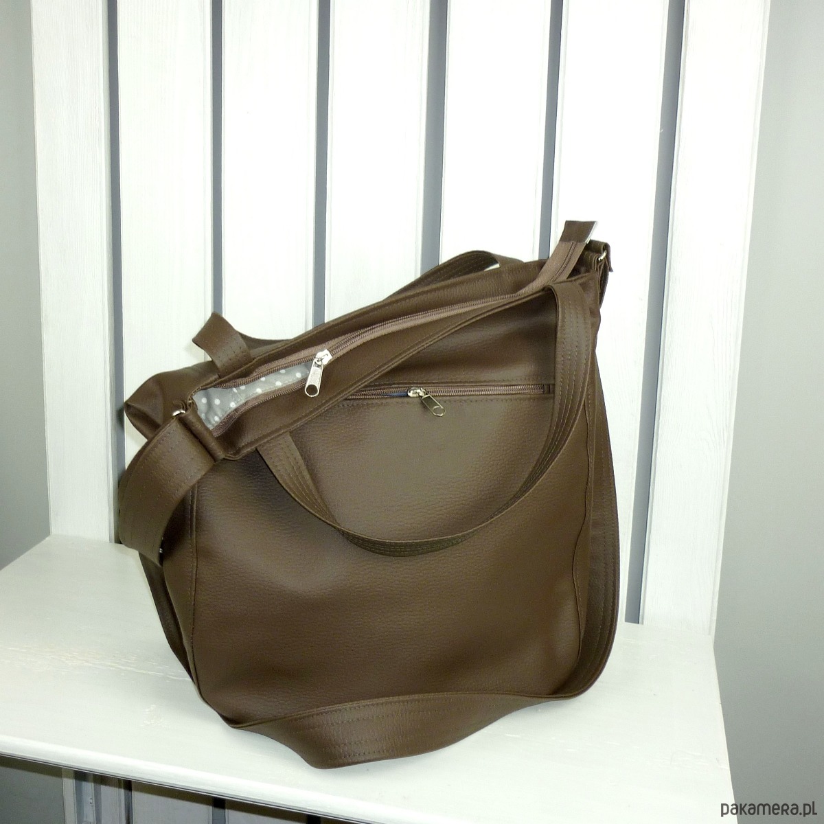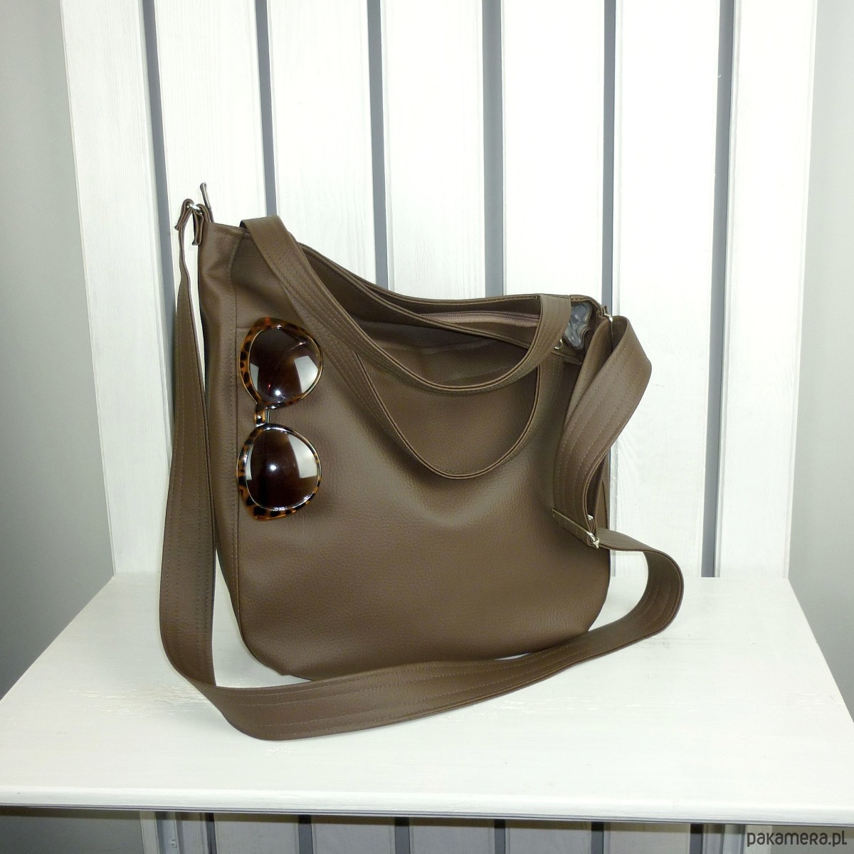 Duża brązowa torba, listonoszka damska, torebka worek na ramię