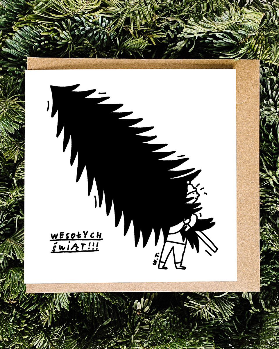Minimalistyczna, ekologiczna kartka świąteczna.