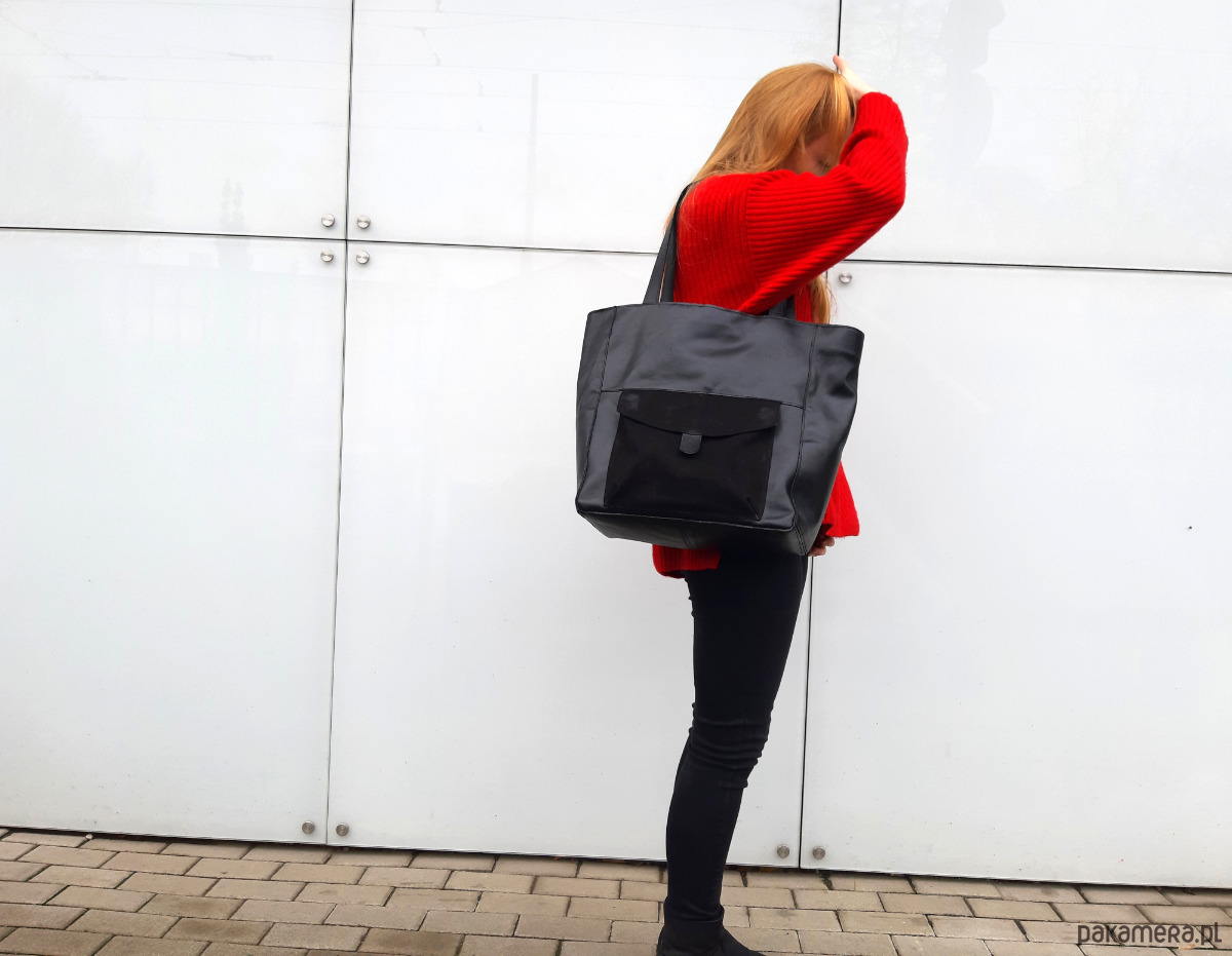 Kieszeń z przodu zapinana jest na magnes ukryty pod klapką.