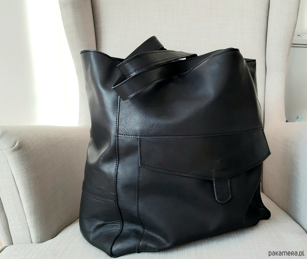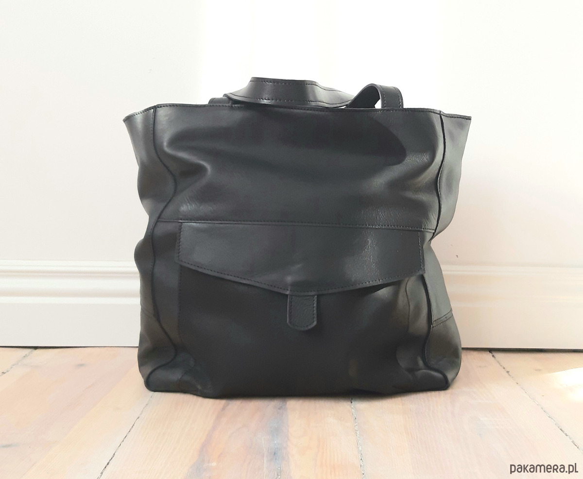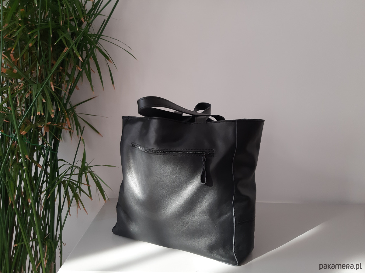 Duża skórzana torba uszyta ze skóry naturalnej. Skóra jest miękka, aksamitna w dotyku, świetnej jakości.