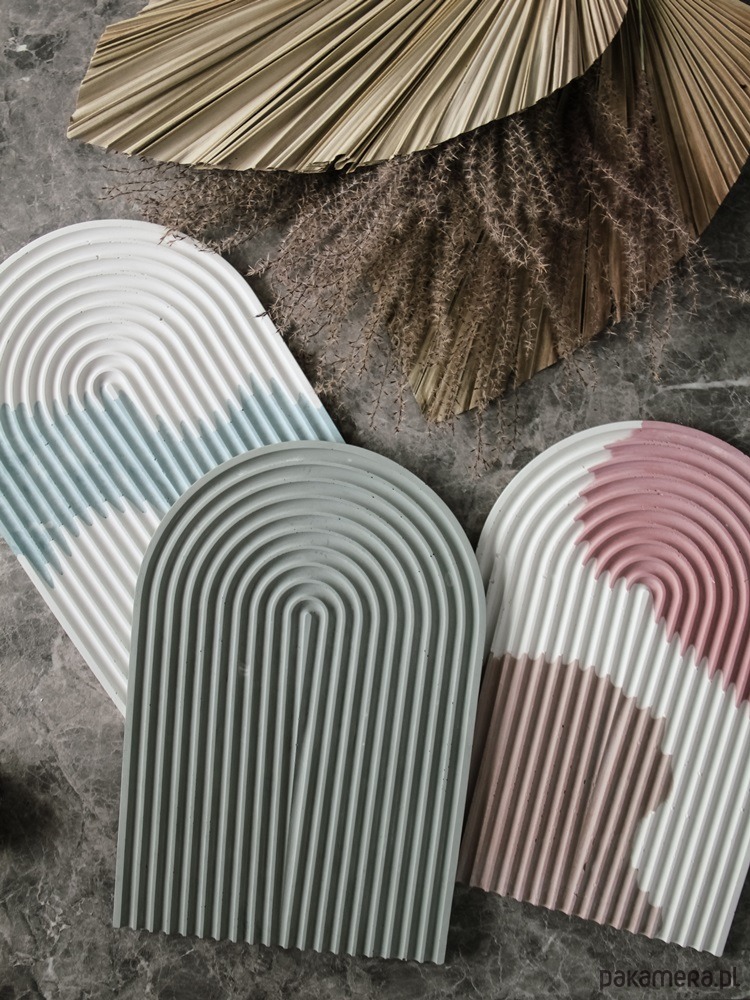 Wyjątkowe dekoracyjne tęcze w pastelowych kolorach wykonane z betonu architektonicznego. Idealna dekoracja do pokoju dziecięcego. Sprawdzą się wspaniale także jako taca na biżuterię, świece i kosmetyki. Wspaniały dodatek do każdego wnętrza.