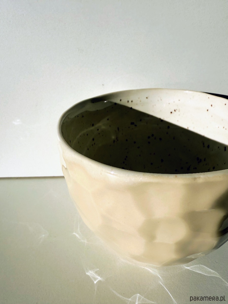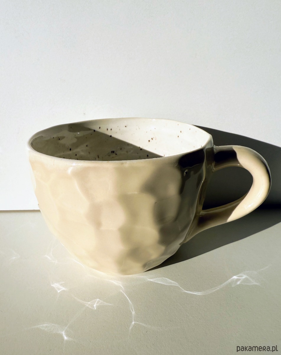Piękna, ręcznie wykonana filiżanka, która pomieści prawie 500 ml rozgrzewającej herbaty lub innych naparów.