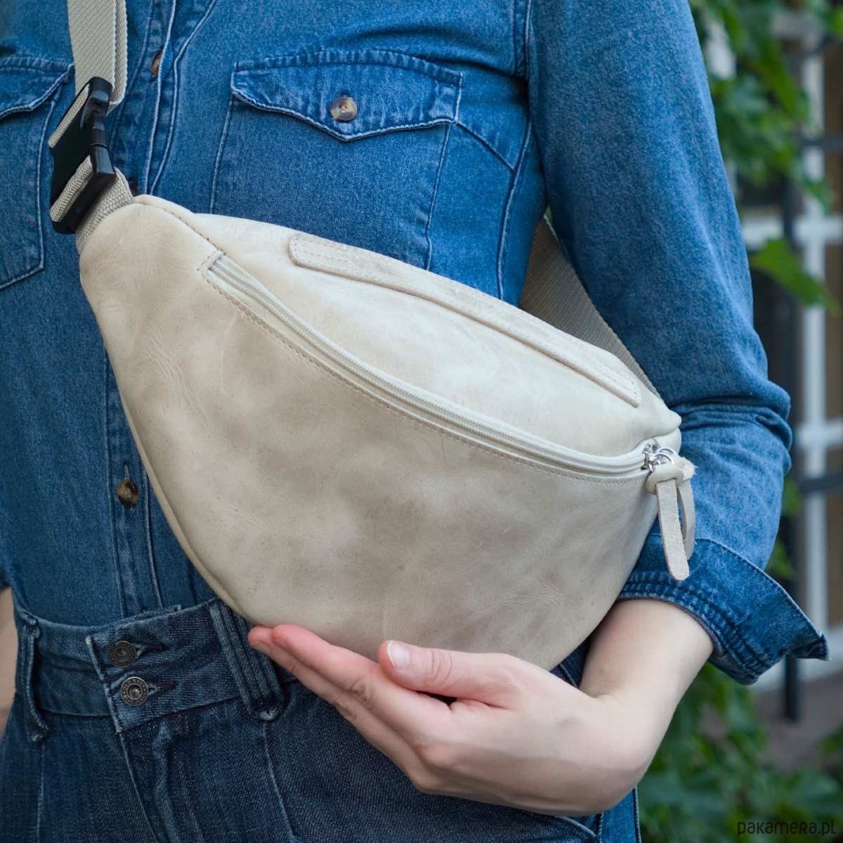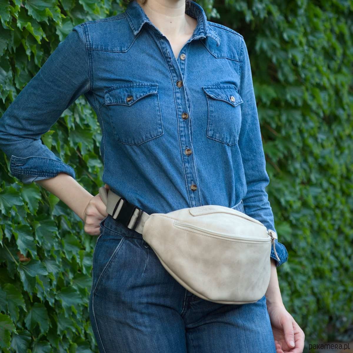 Duża Jasnobeżowa Torebka Nerka damska Skórzana Belveder NX19