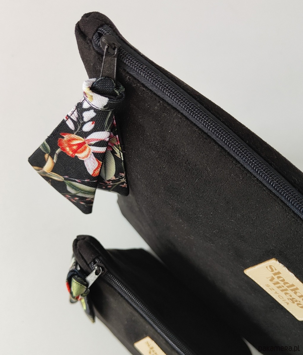 Kosmetyczka posiada przy ekspresie uchwyt w pięknym wzorze co dodaje jej niepowtarzalnego wyglądu i elegancji.
