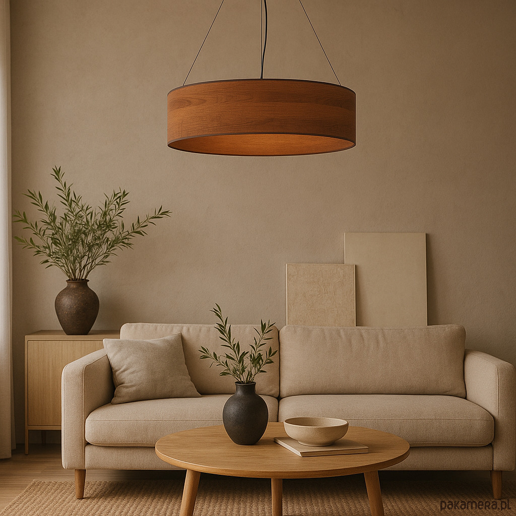 Dostępne abażury mają różne odcienie drewna, od jasnych po ciemne, co pozwala na dopasowanie do różnych stylów wnętrz. Stelaże lamp występują w kilku kolorach, w tym nowoczesnych i klasycznych wykończeniach, umożliwiając stworzenie harmonijnej kompozycji z abażurem. Przykładowe lampy łączą te elementy, tworząc stylowe i funkcjonalne oświetlenie do różnych przestrzeni.