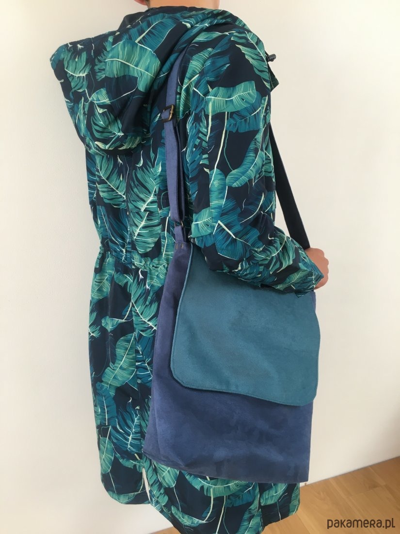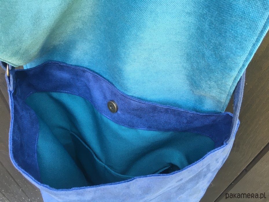 Listonoszka wykonana z alcantary (syntetycznego zamszu).