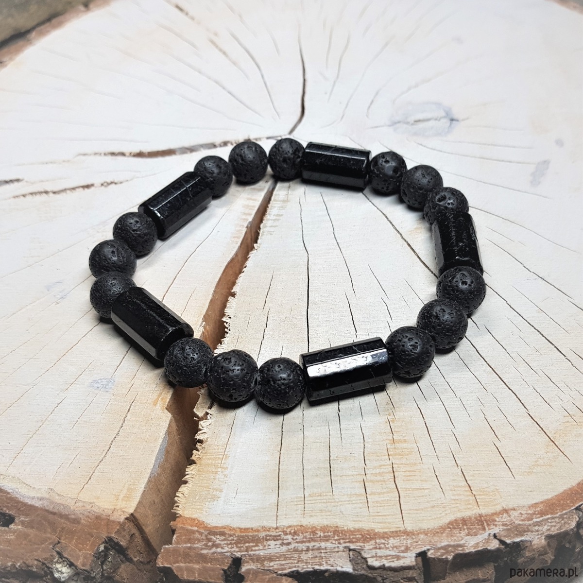 Duża męska bransoletka mocy - turmalin i lawa b9