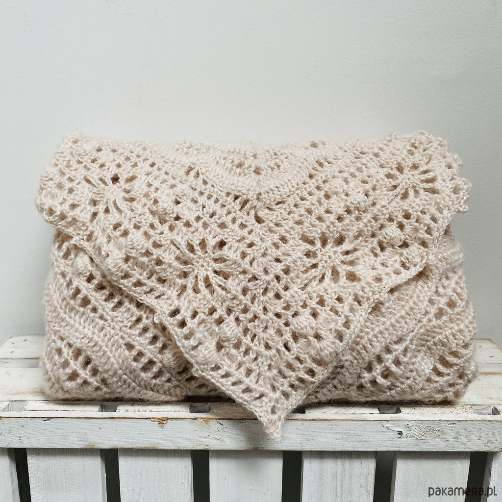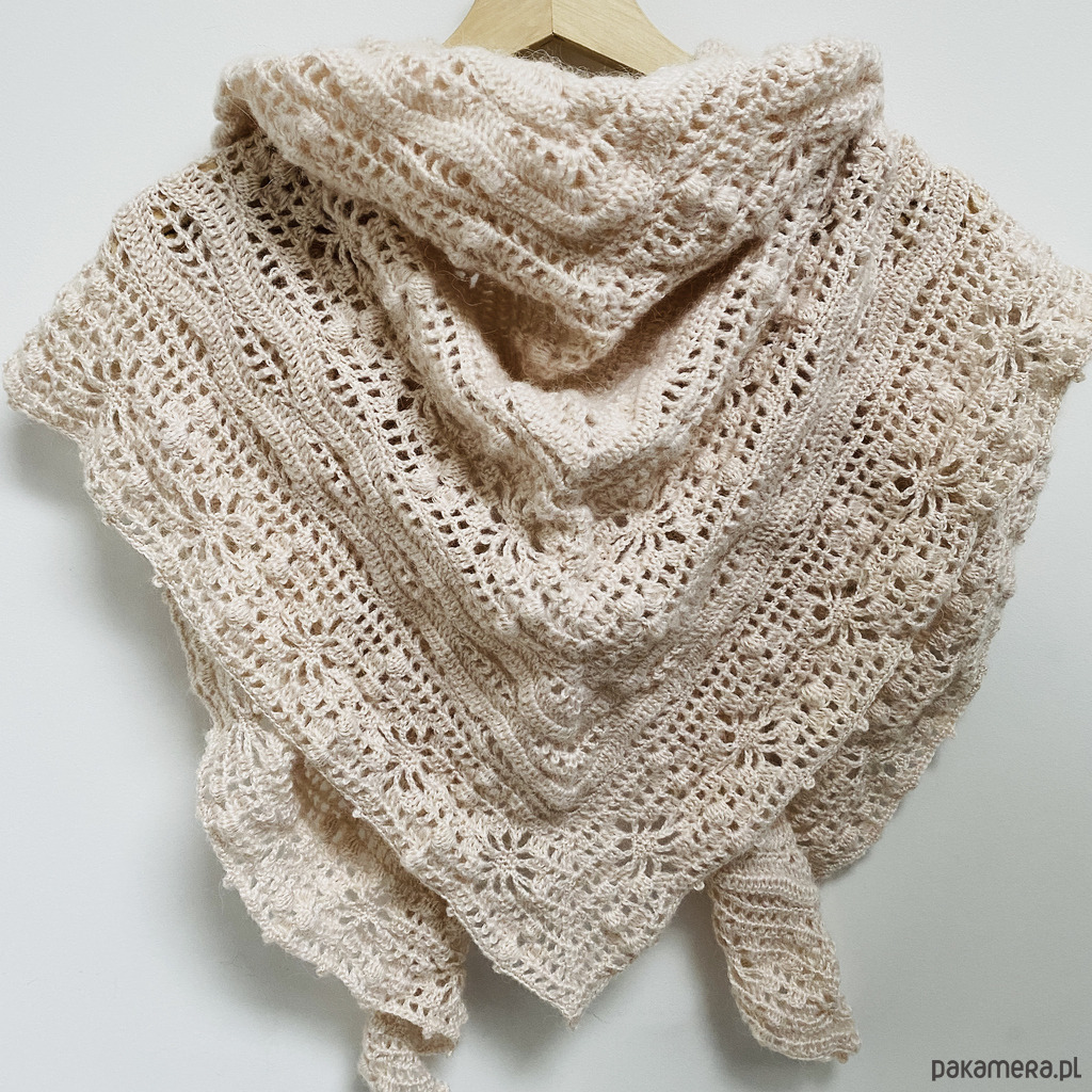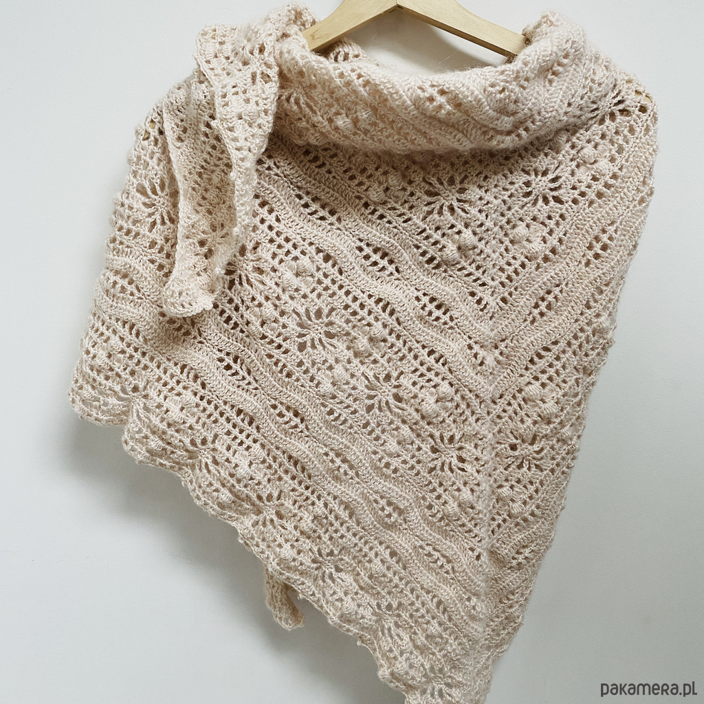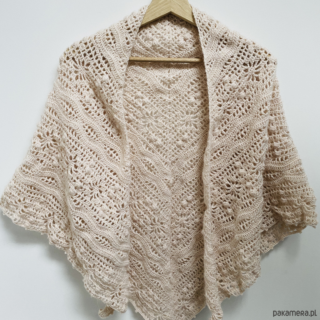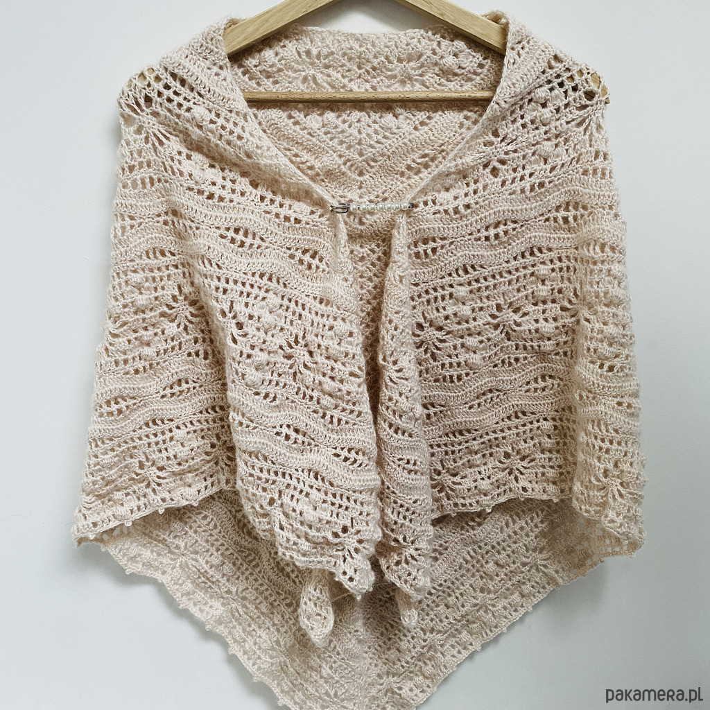 Chusta ślubna handmade ręcznie robiona miękka elegancka beżowy róż