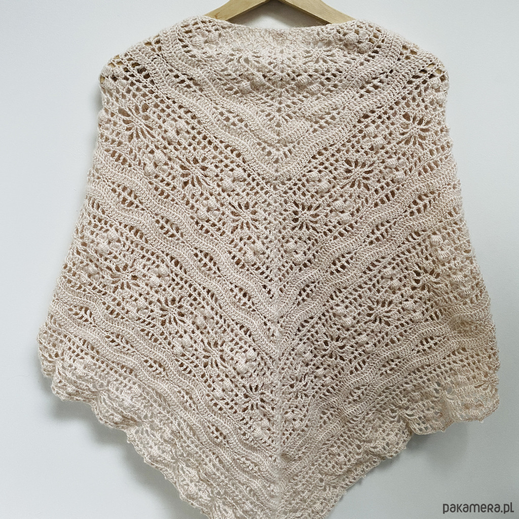 Ta chusta na ślub pasuje zarówno do klasycznych, jak i nowoczesnych stylizacji. Można założyć ją na ceremonię, przyjęcie weselne, a po ślubie nosić również na co dzień — jako elegancki szal lub chustę handmade do sukienek i płaszczy.