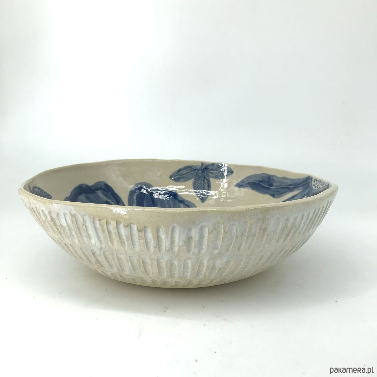 Duża misa ceramiczna „Kwiaty” – ręcznie malowana, Cobalt Nature