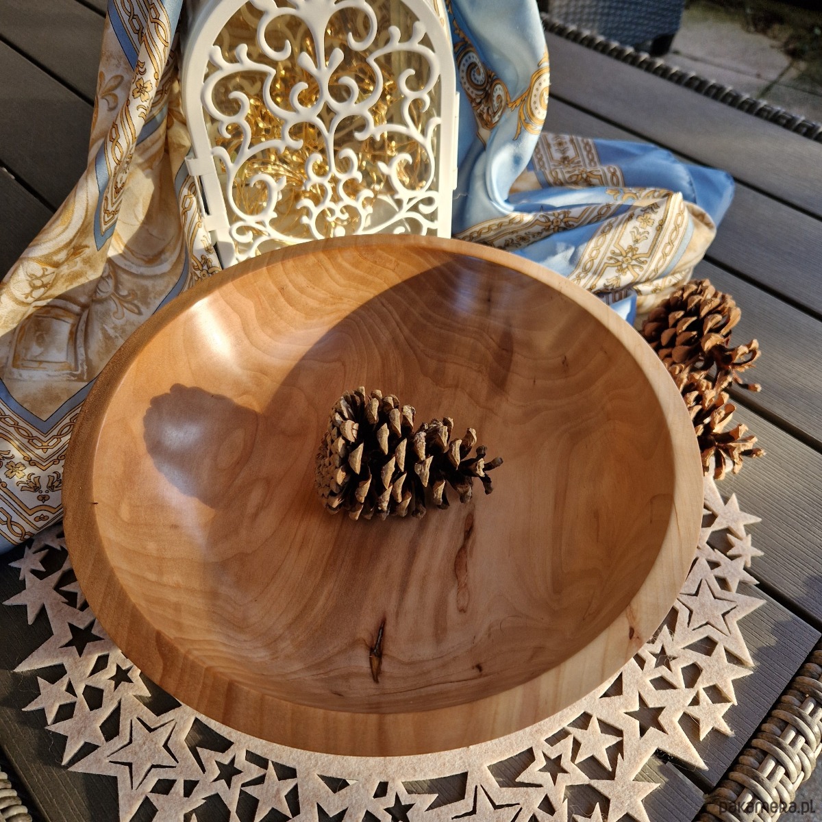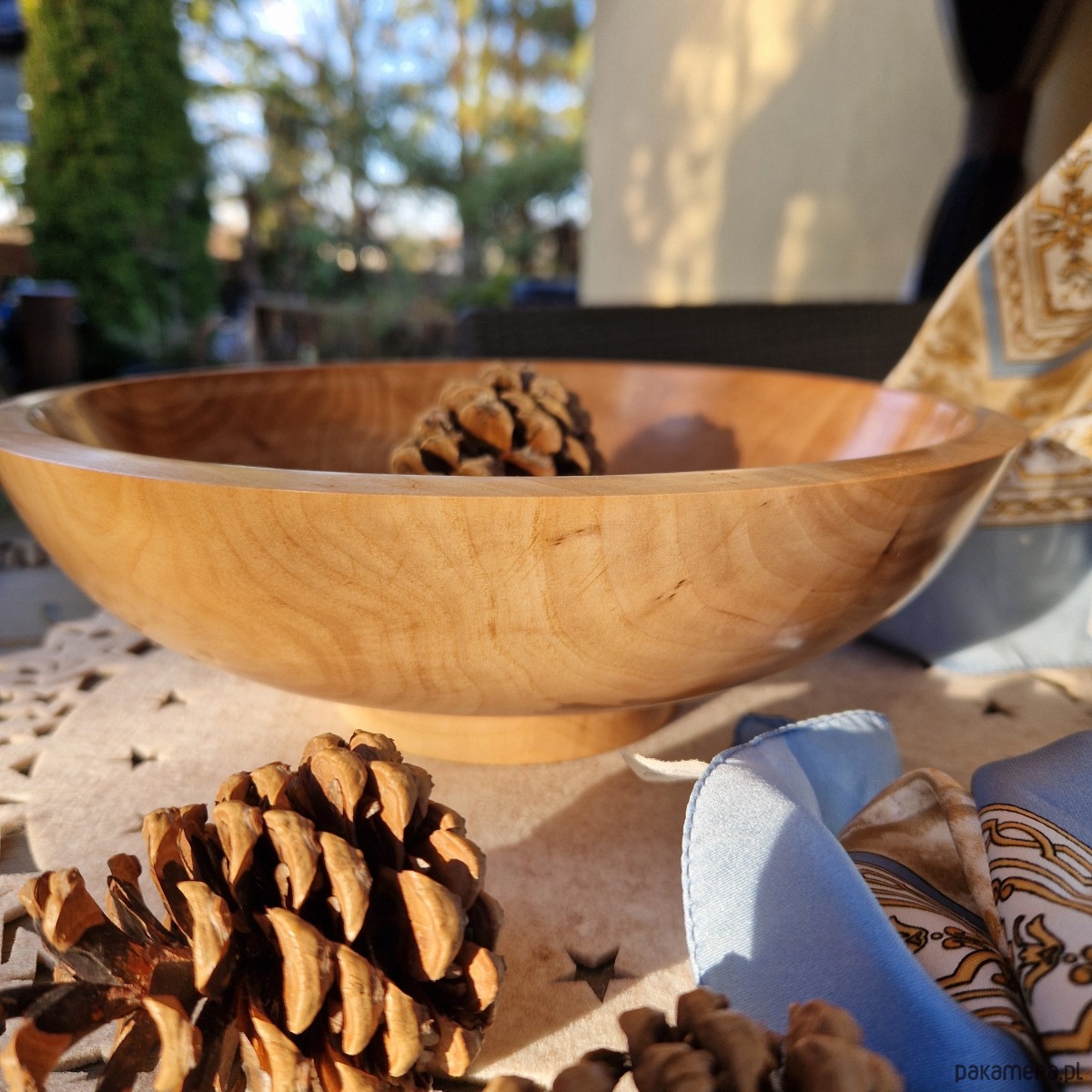 Każda misa jest indywidualnie toczona na tokarce i wykańczana ręcznie. Naturalne różnice w usłojeniu, kolorze i formie sprawiają, że każdy egzemplarz jest absolutnie jedyny w swoim rodzaju.