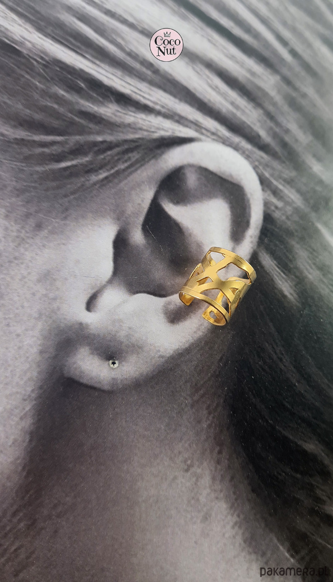 Duża nausznica na środek ucha OPEN złocona.