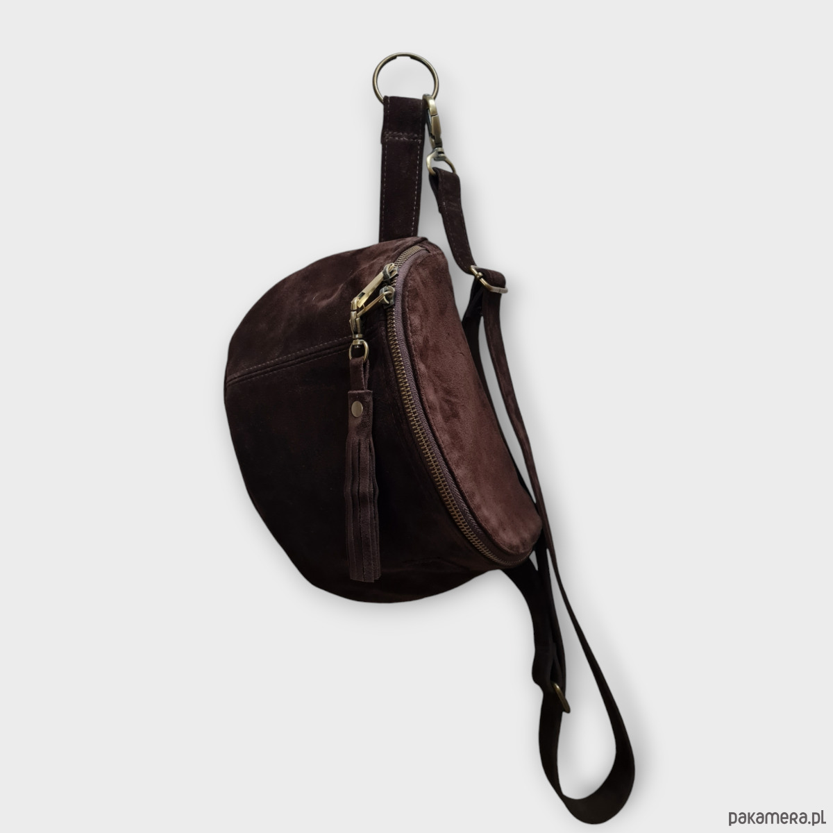 Duża nerka, saszetka, czekoladowa. Zamszowa nerka