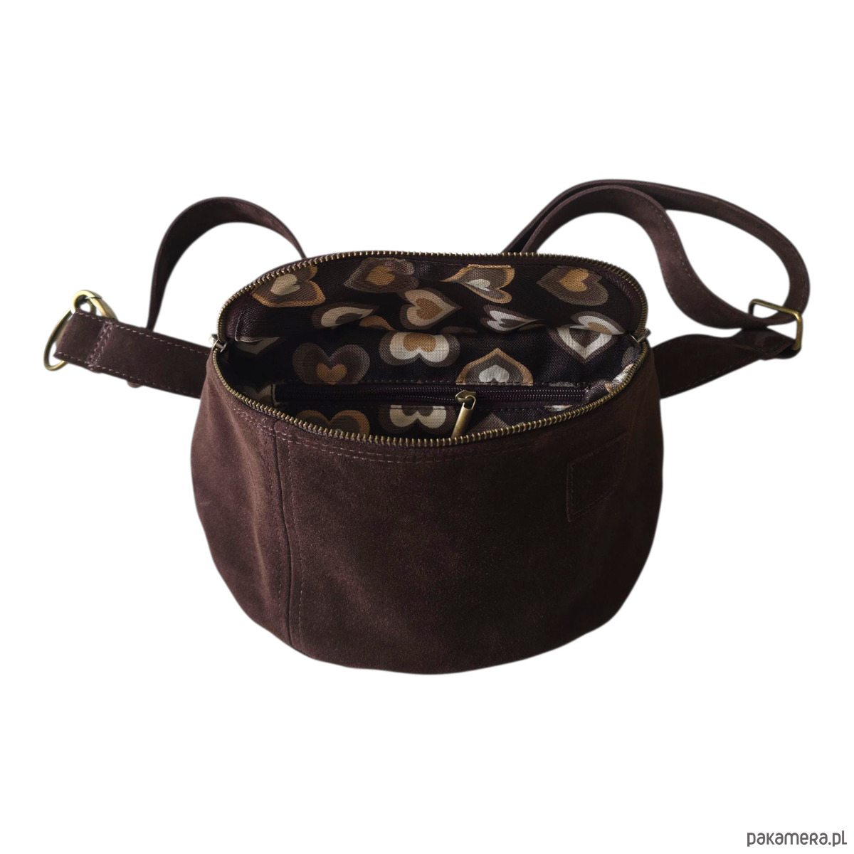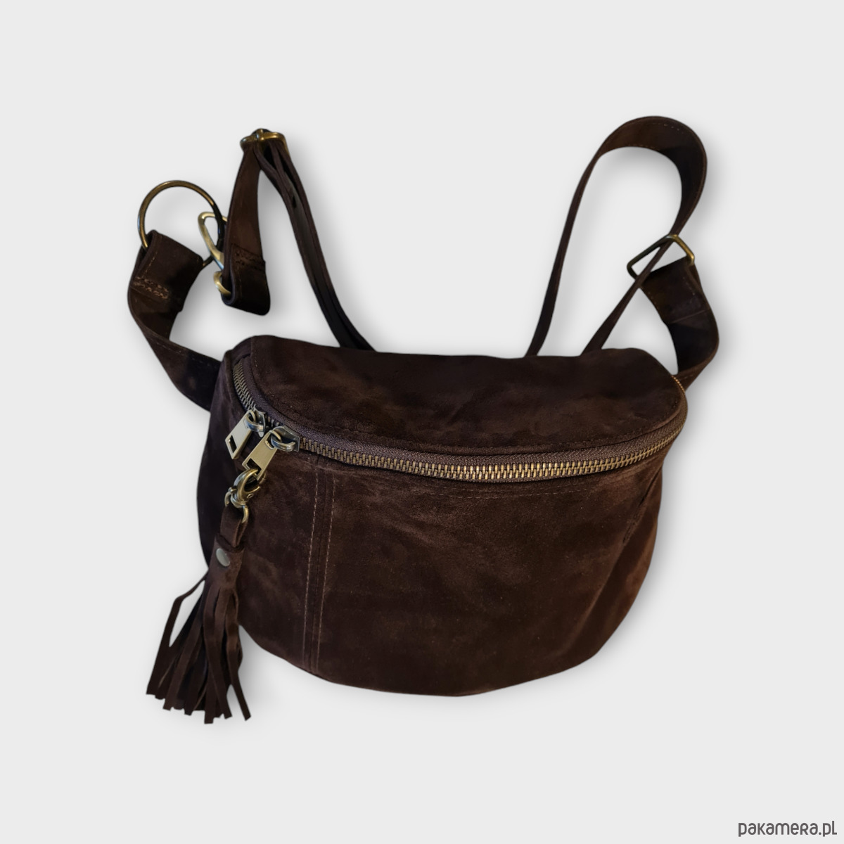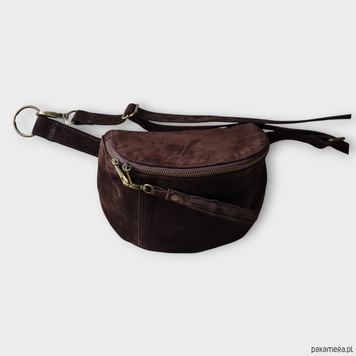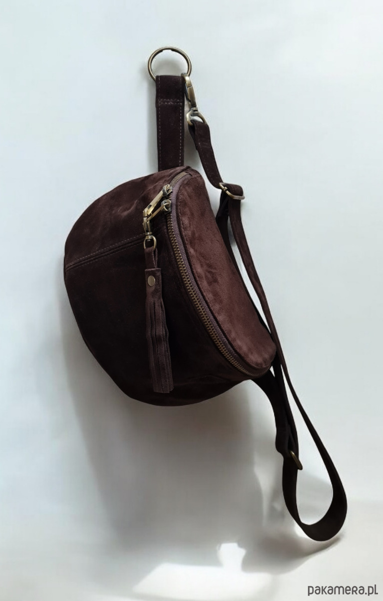Duża nerka, saszetka, czekoladowa. Zamszowa nerka