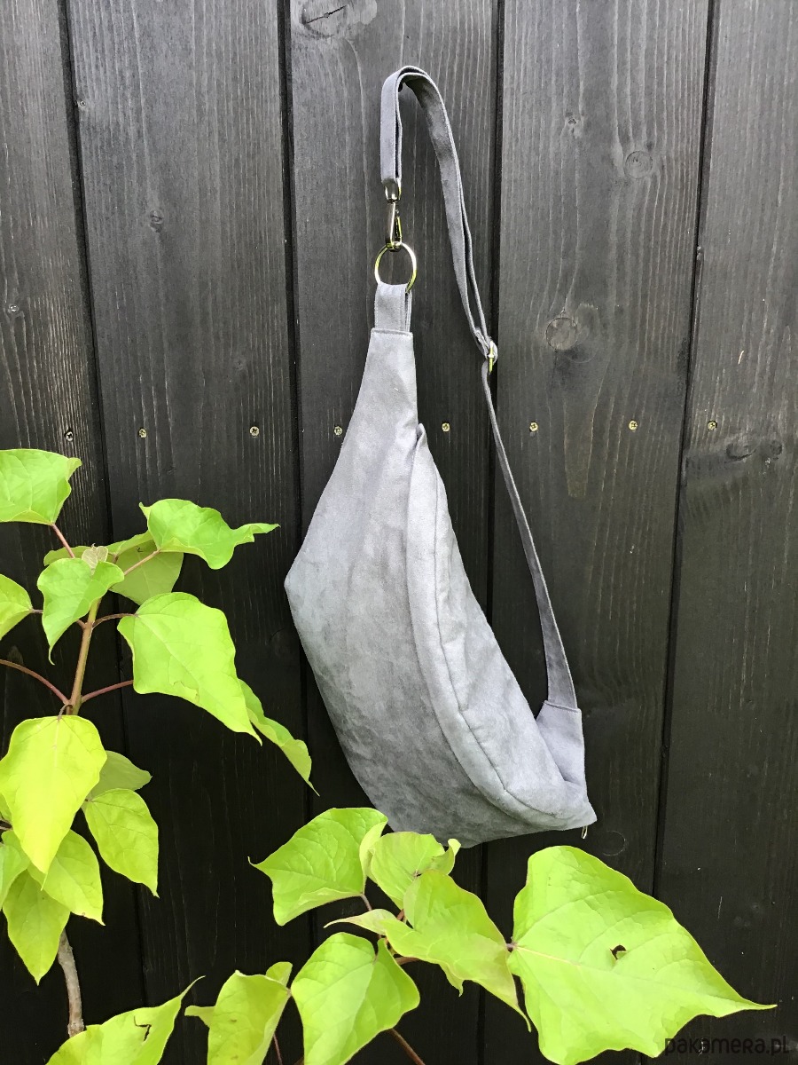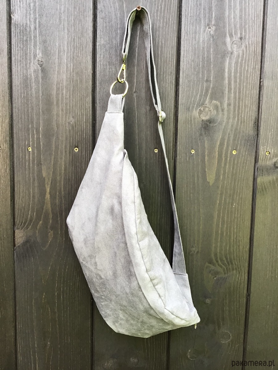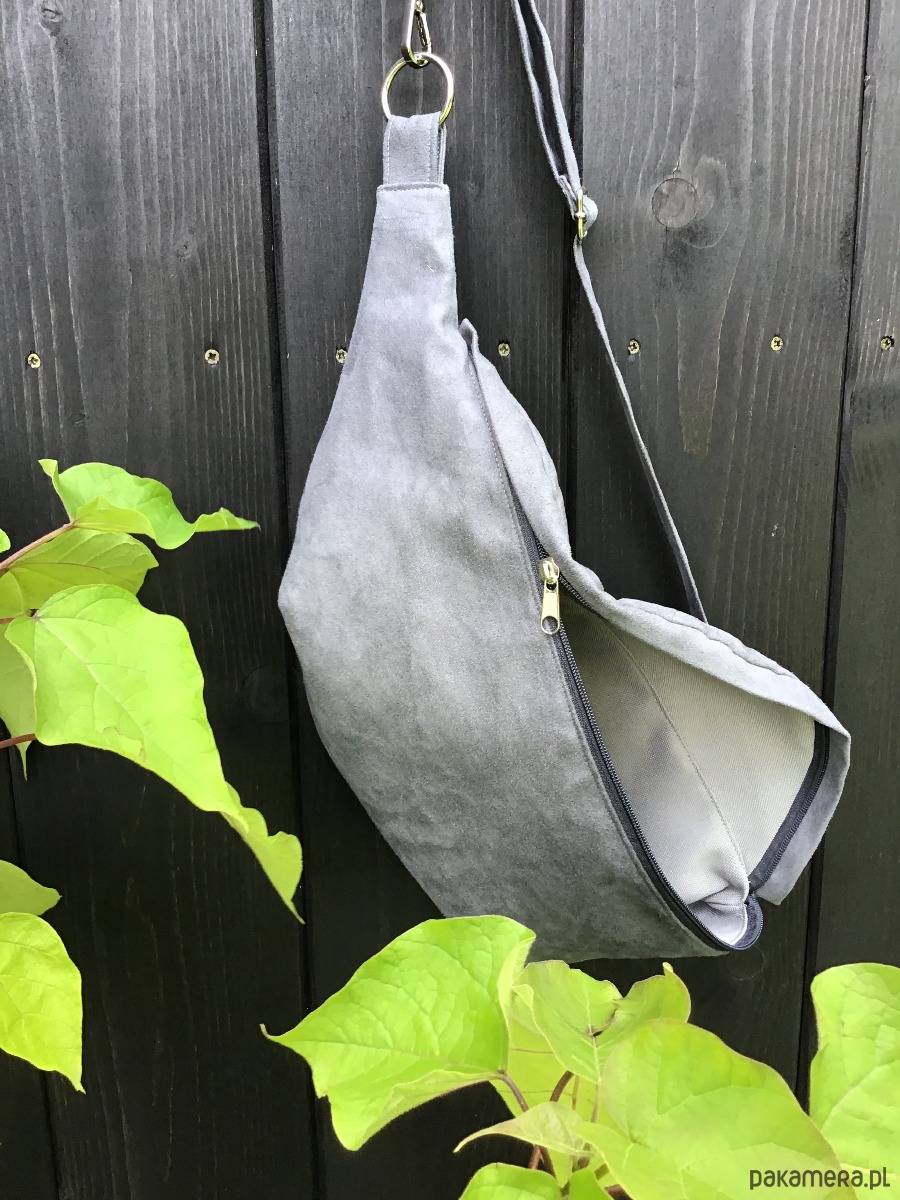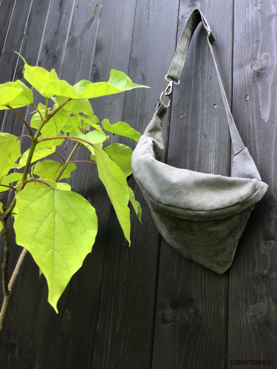 Duża i pojemna nerka wykonana z alcantry (eko zamszu).
