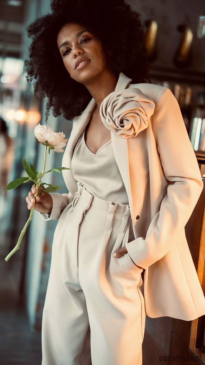 Kolorystyka odpowiada innym marynarkom i spodniom z kolekcji ZAQANNA