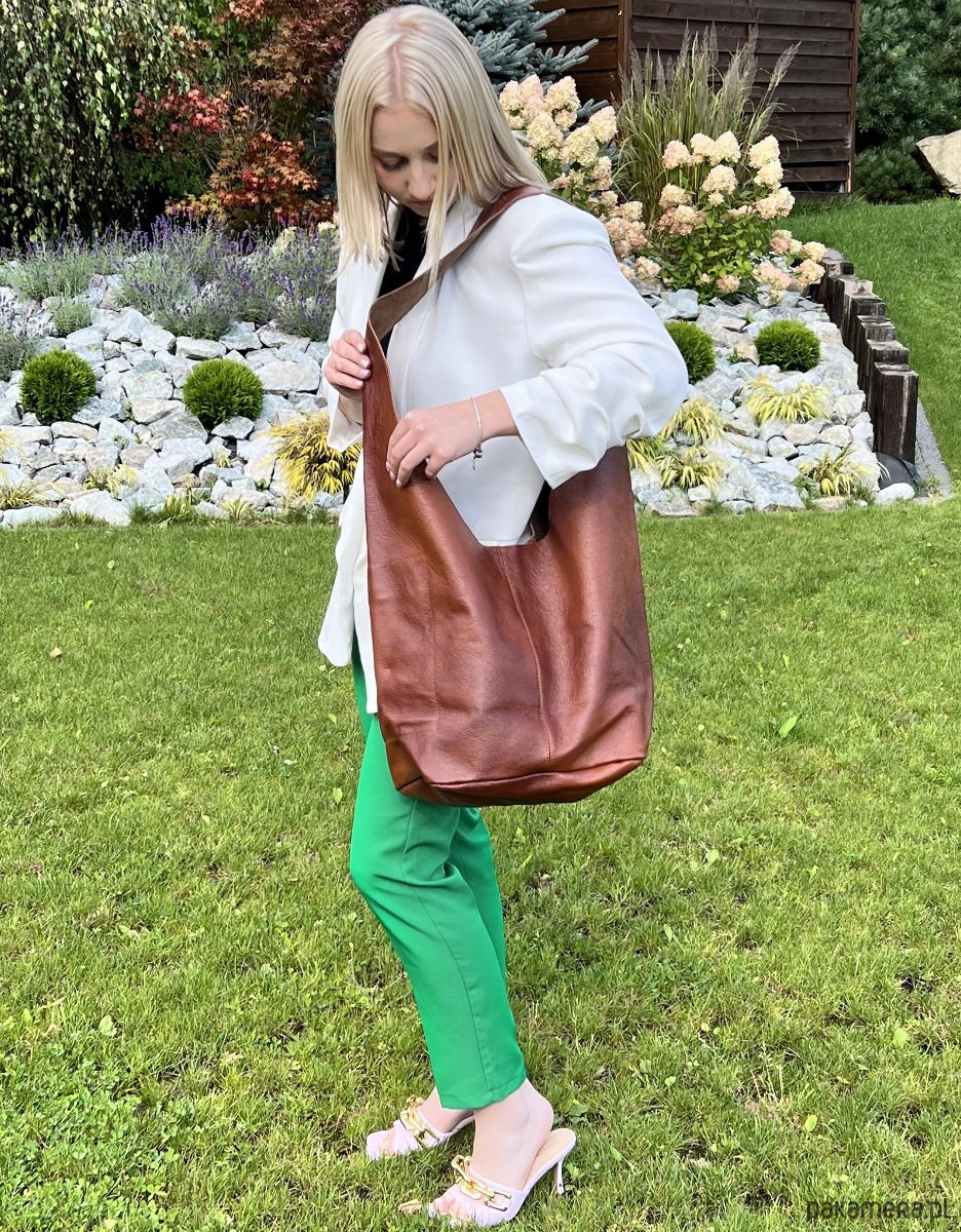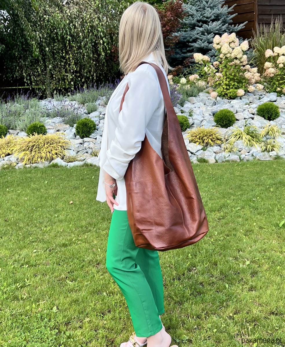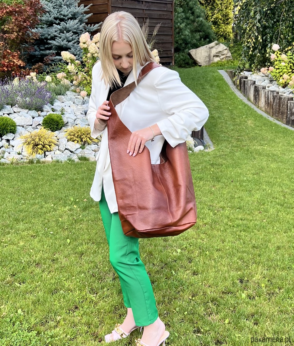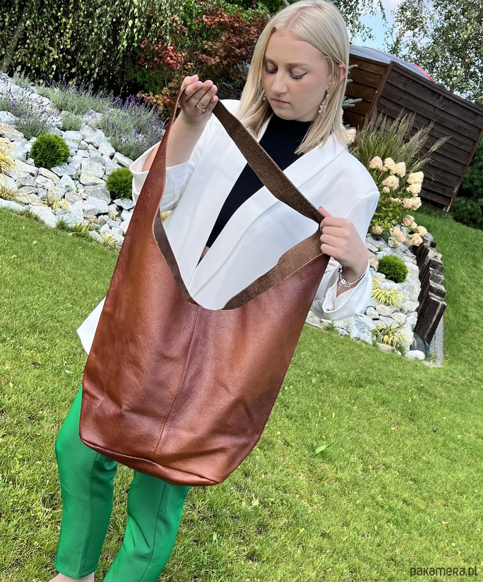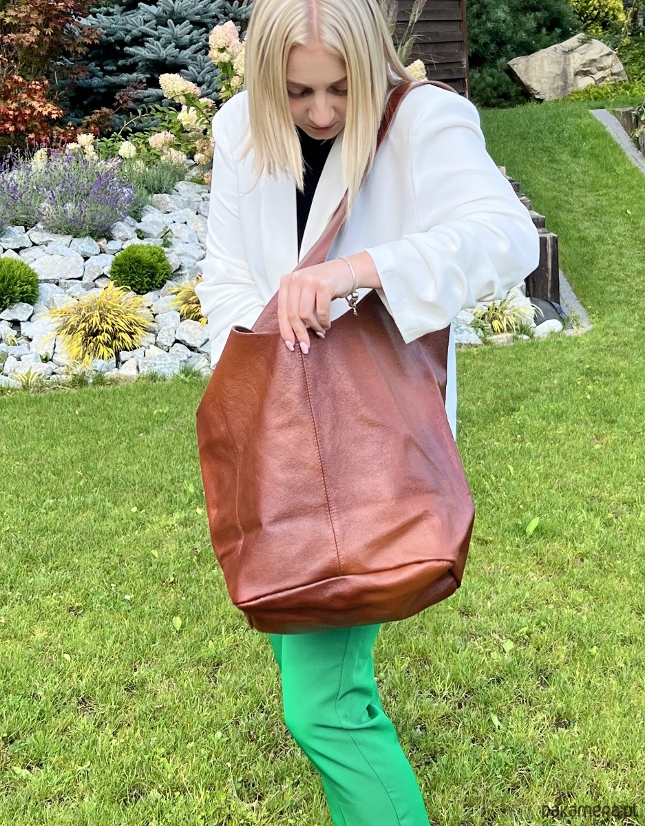 Ta duża torba wykonana jest z wysokiej jakości włoskiej skóry. Torebka jest bardzo pojemna i praktyczna. Wykonana z dbałością o każdy szczegół. Świetnie sprawdzi się jako torba na zakupy.