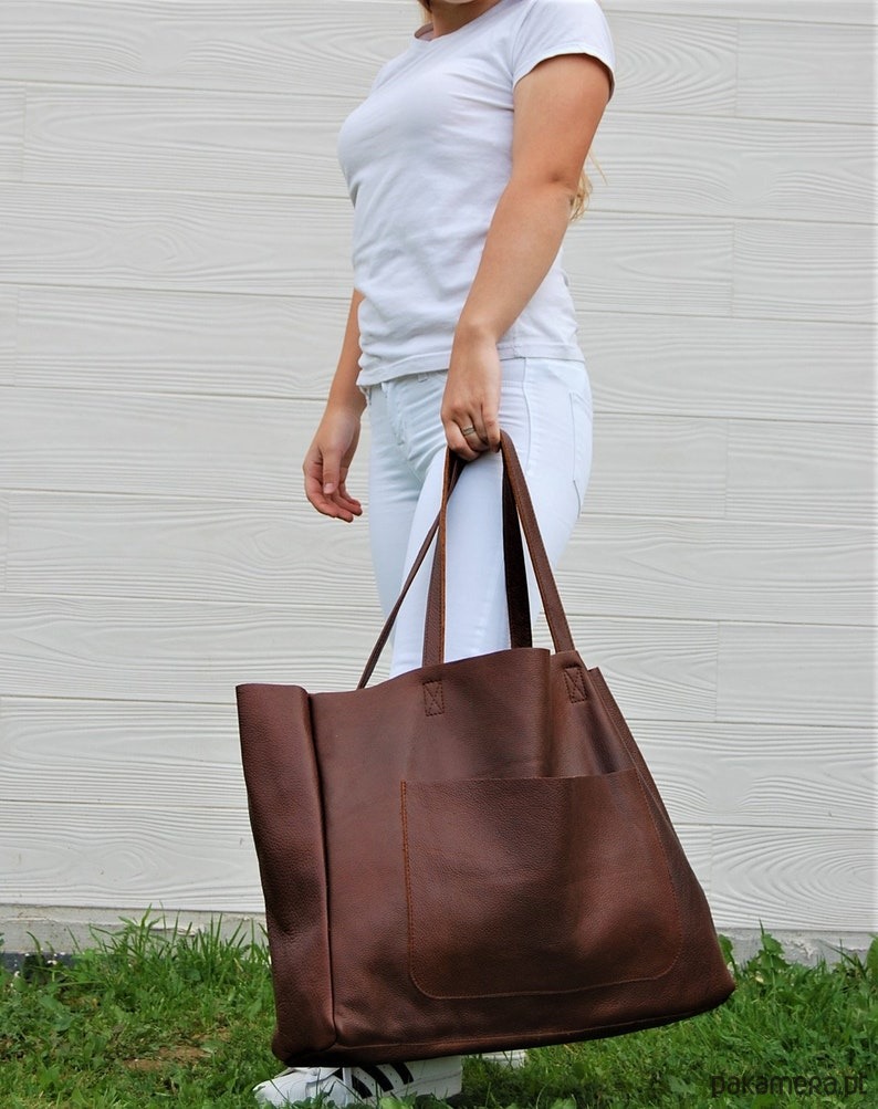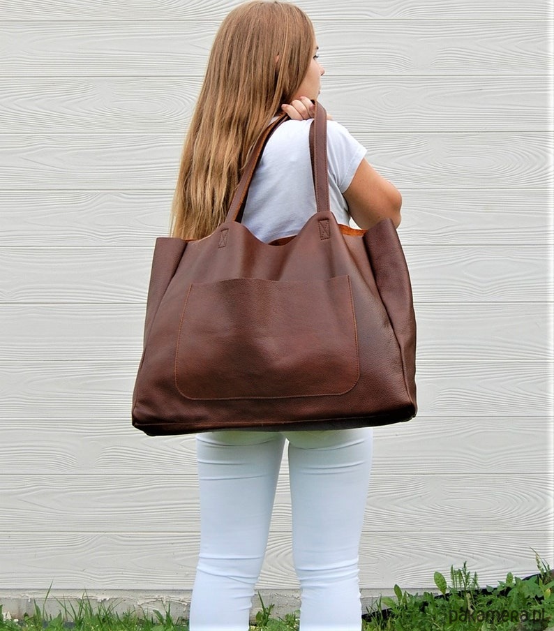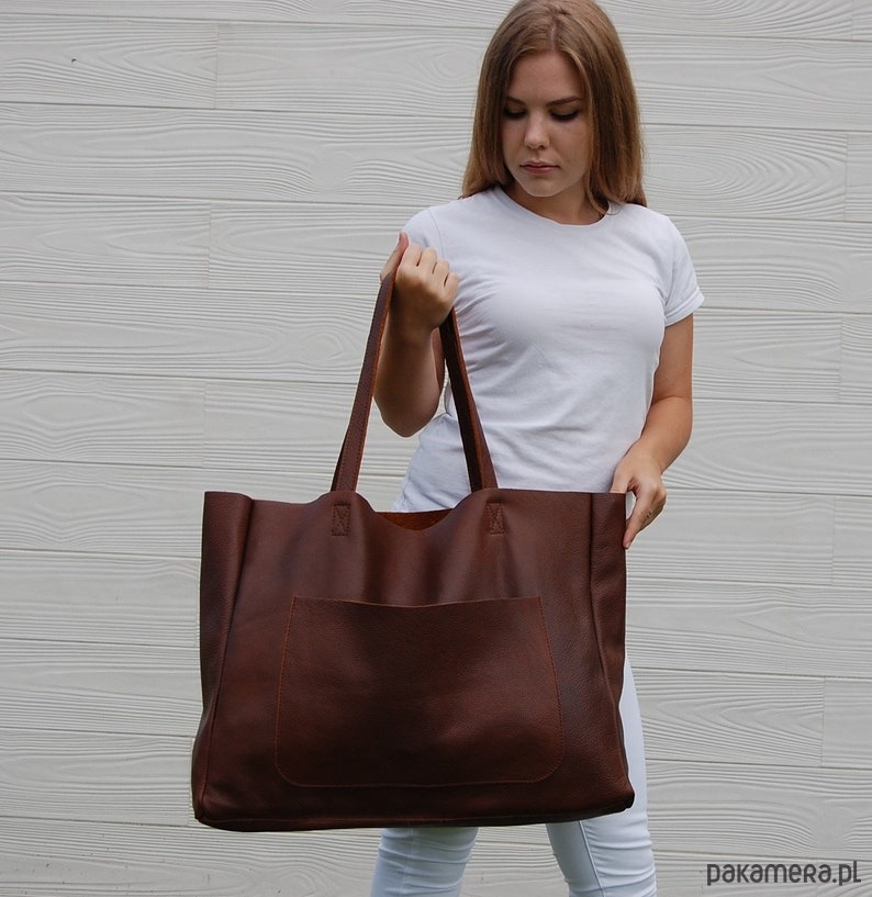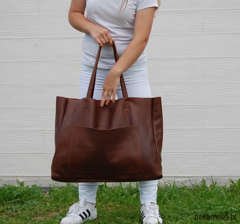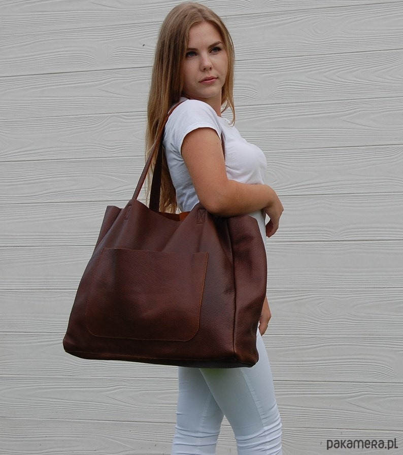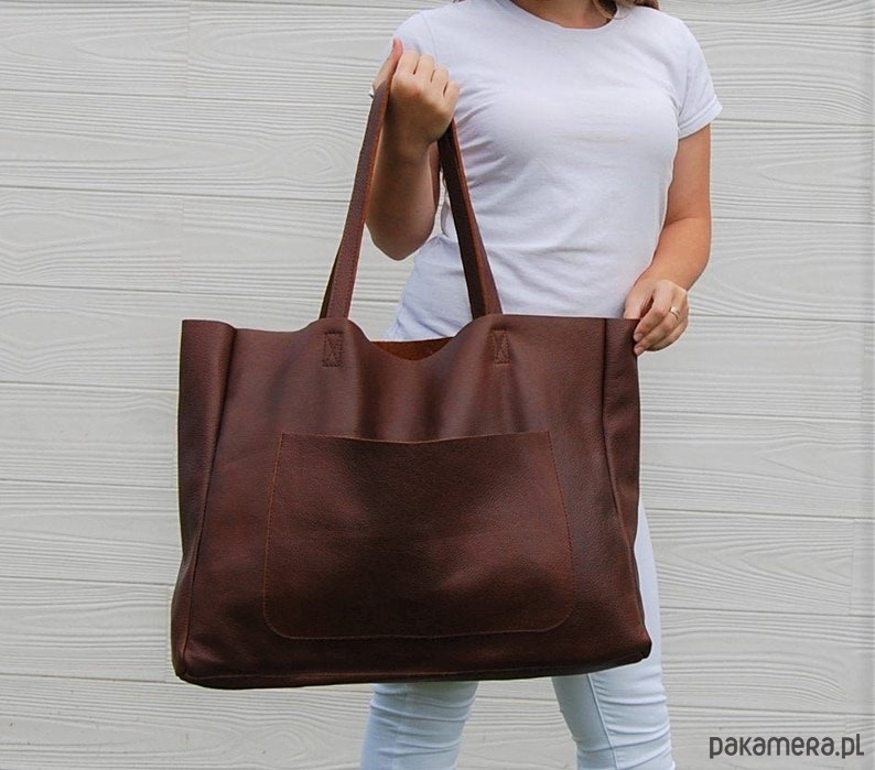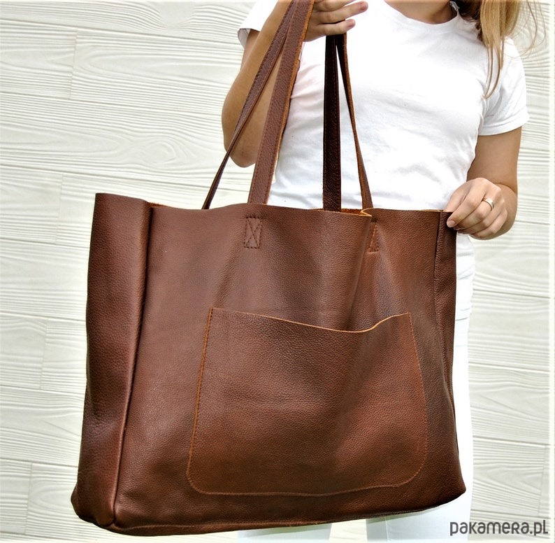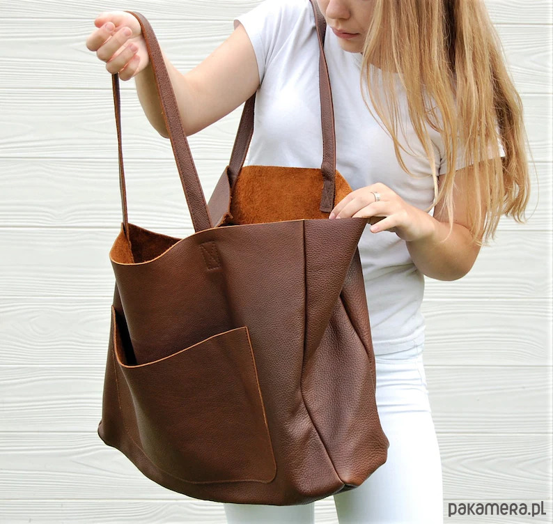Duża skórzana torba damska z kieszenią