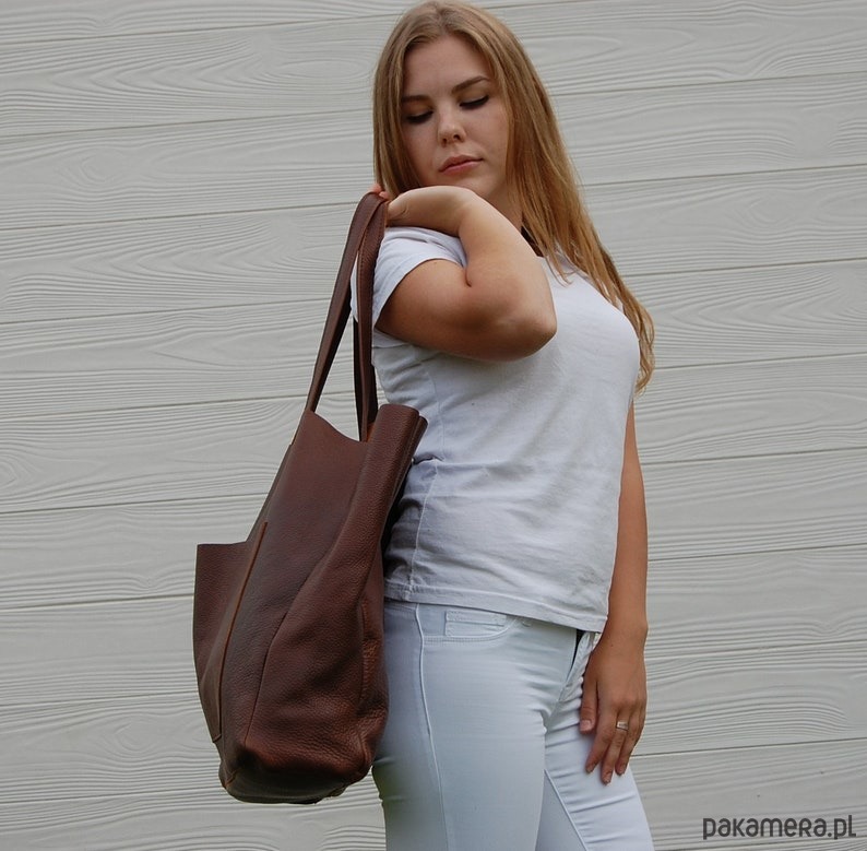 Ta duża brązowa torba wykonana jest z wysokiej jakości włoskiej skóry. Torebka jest bardzo pojemna i praktyczna. Wykonana z dbałością o każdy szczegół. Świetnie sprawdzi się jako torba na zakupy.