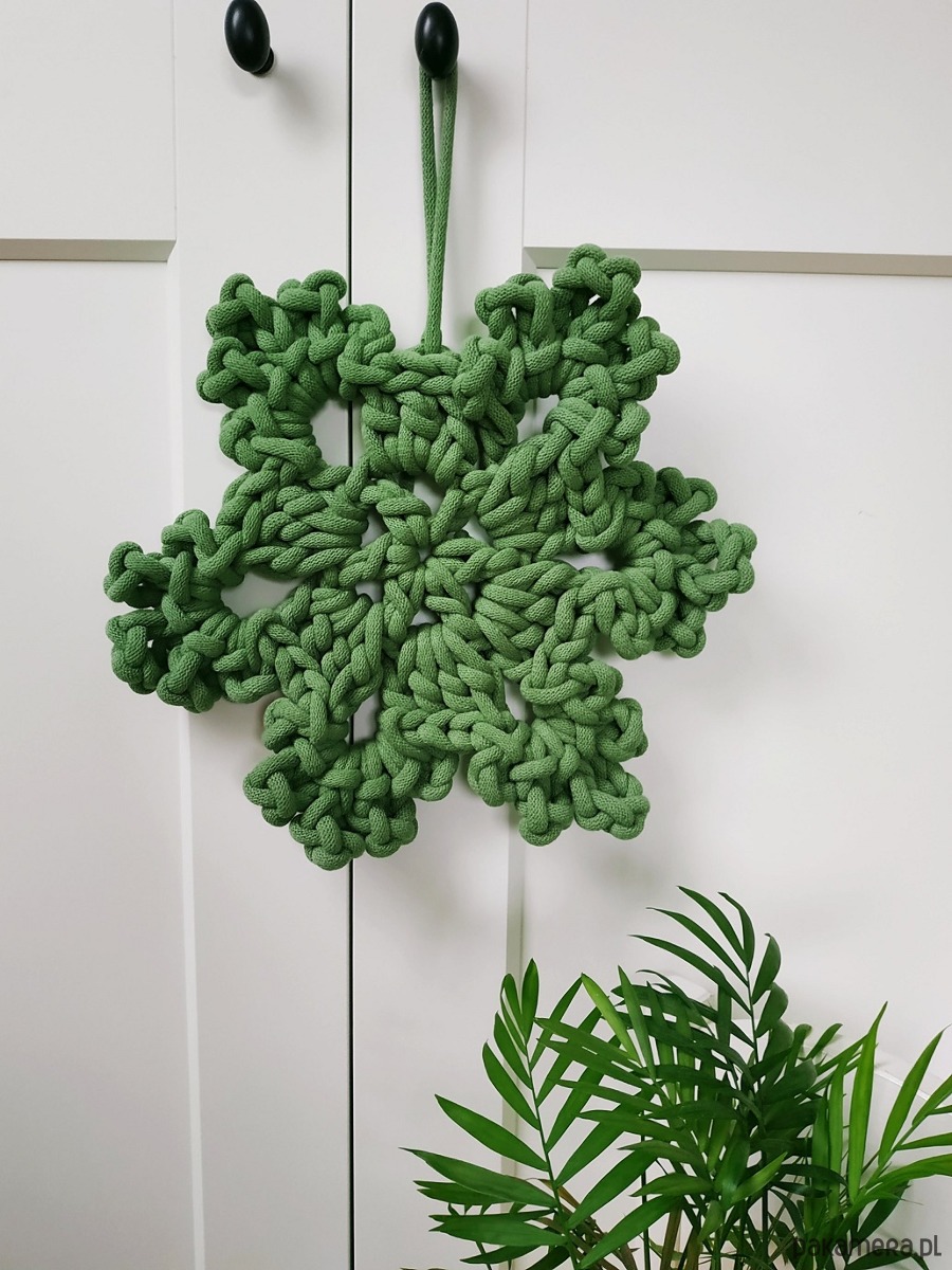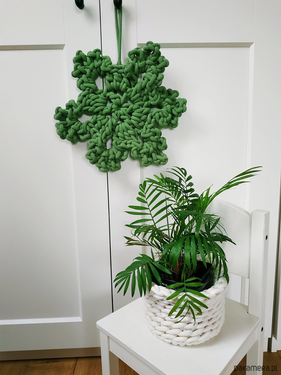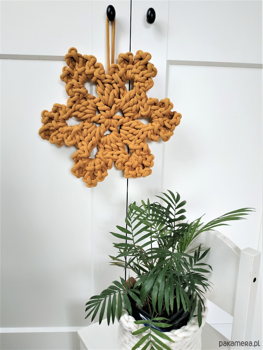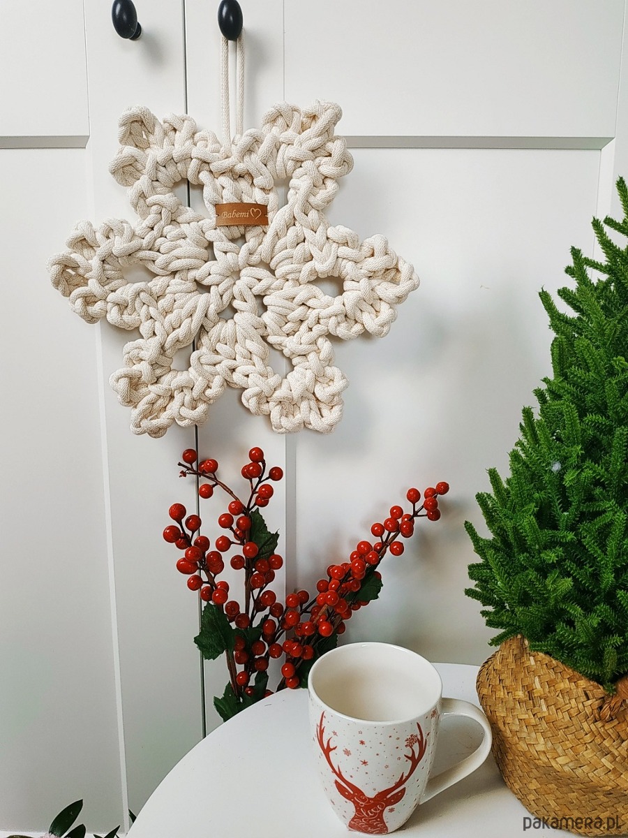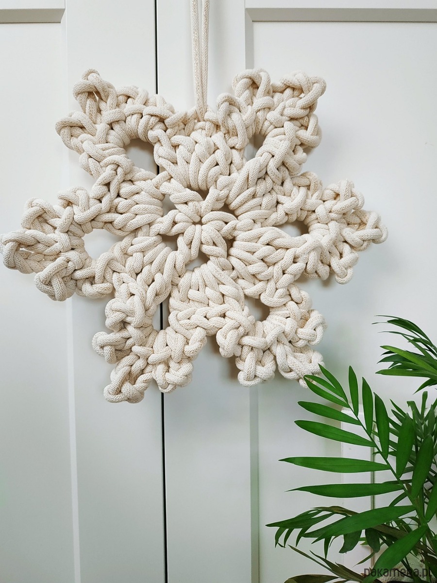 Duża śnieżynka na szydełku z grubego sznurka bawełnianego " SNOWFLAKE"