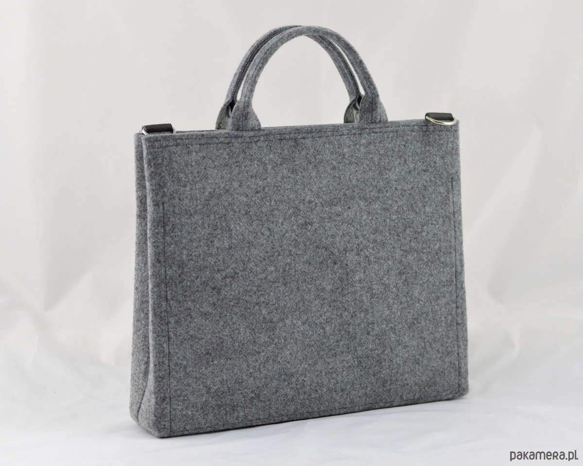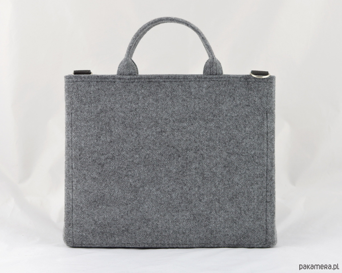 Torebka została wykonana z grubego, mocnego, impregnowanego filcu. Prosta, minimalistyczna forma.