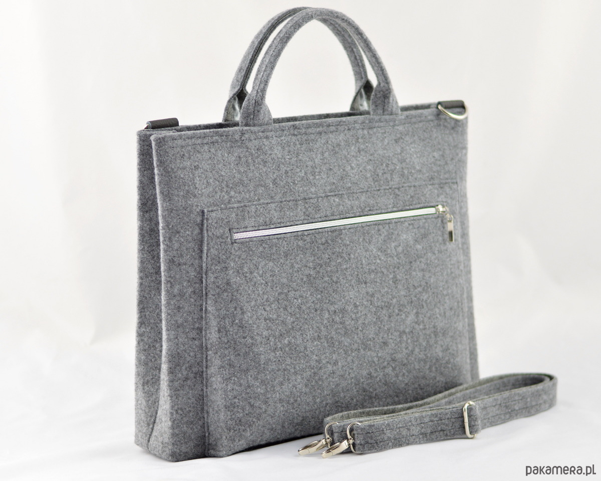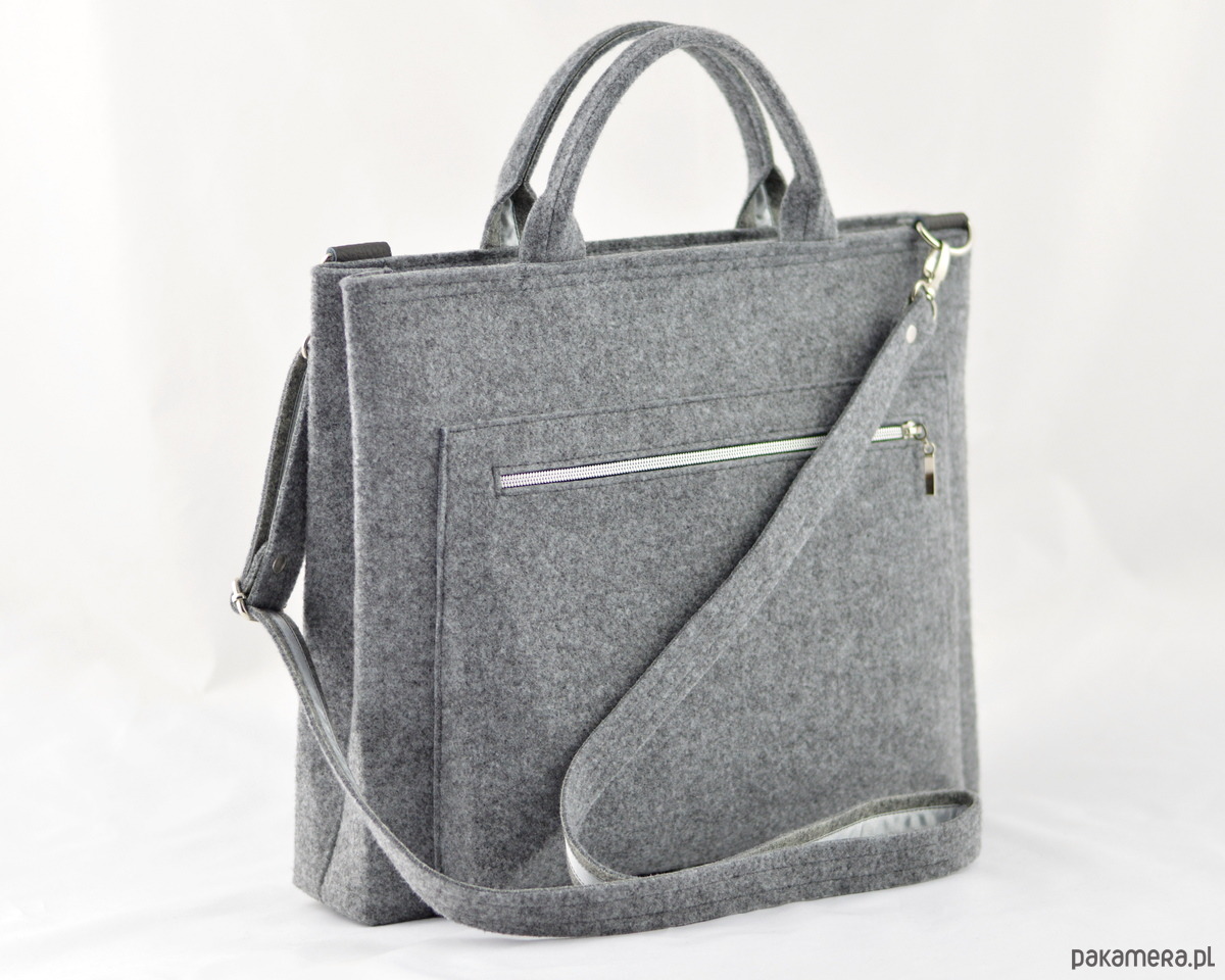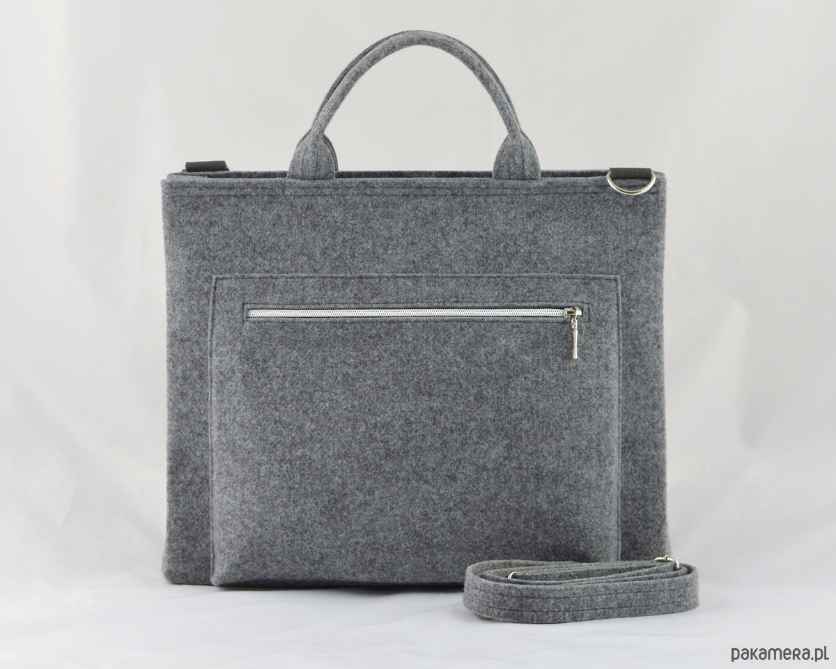Torebka jest bardzo starannie wykonana, wygląda naprawdę ładnie! Szerokość torebki 39cm, wysokość bez rączki - około 33 cm, głębokość około 6,5 cm. Została wykonana z dbałością o każdy szczegół - zapięcie na suwak. W środku znajduje się duża filcowa kieszeń (35,5x24cm), do której wsunąć można laptop, tablet lub dokumenty. Wewnątrz torby znajduje się kieszonka na telefon oraz kieszonka na suwak.