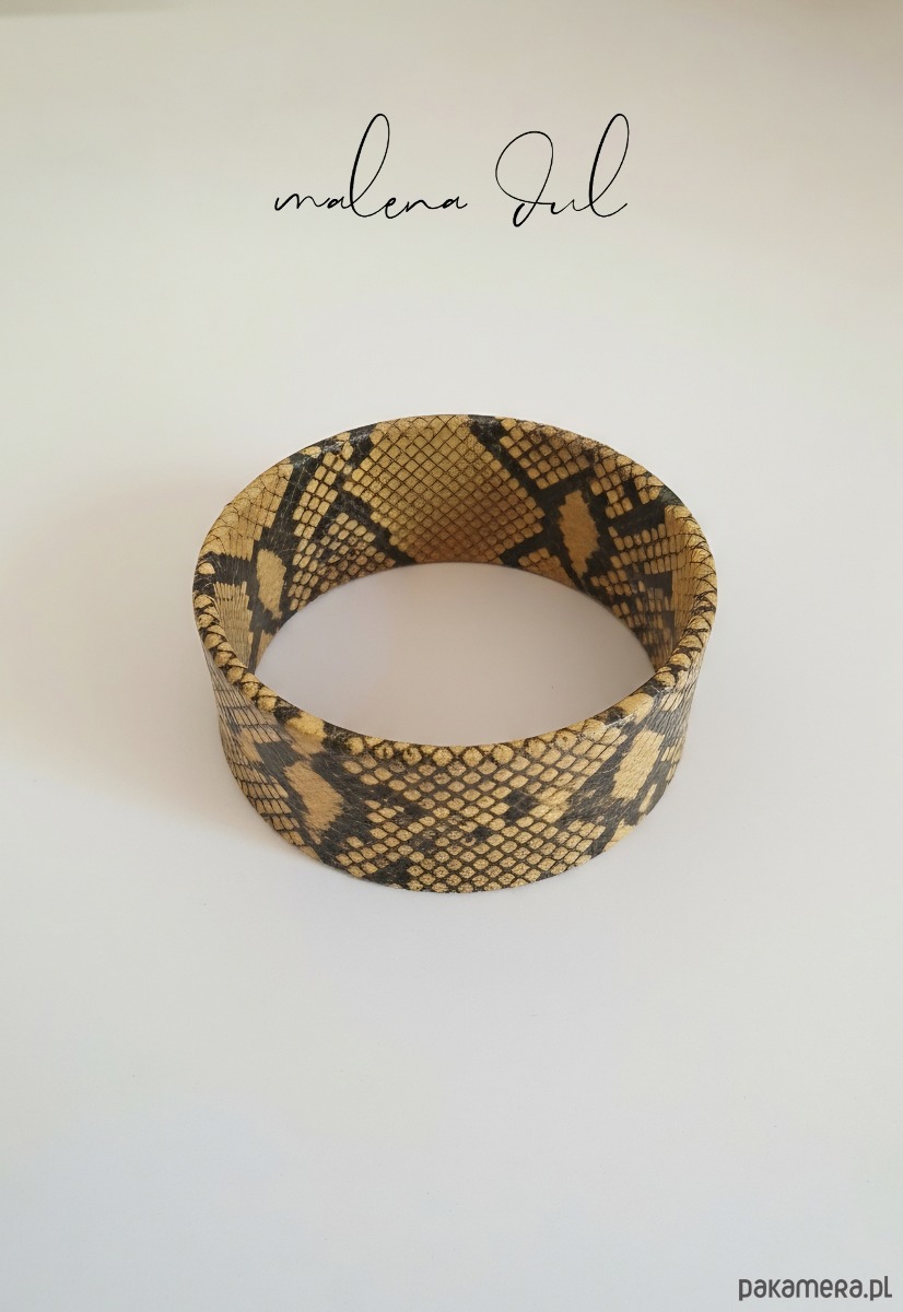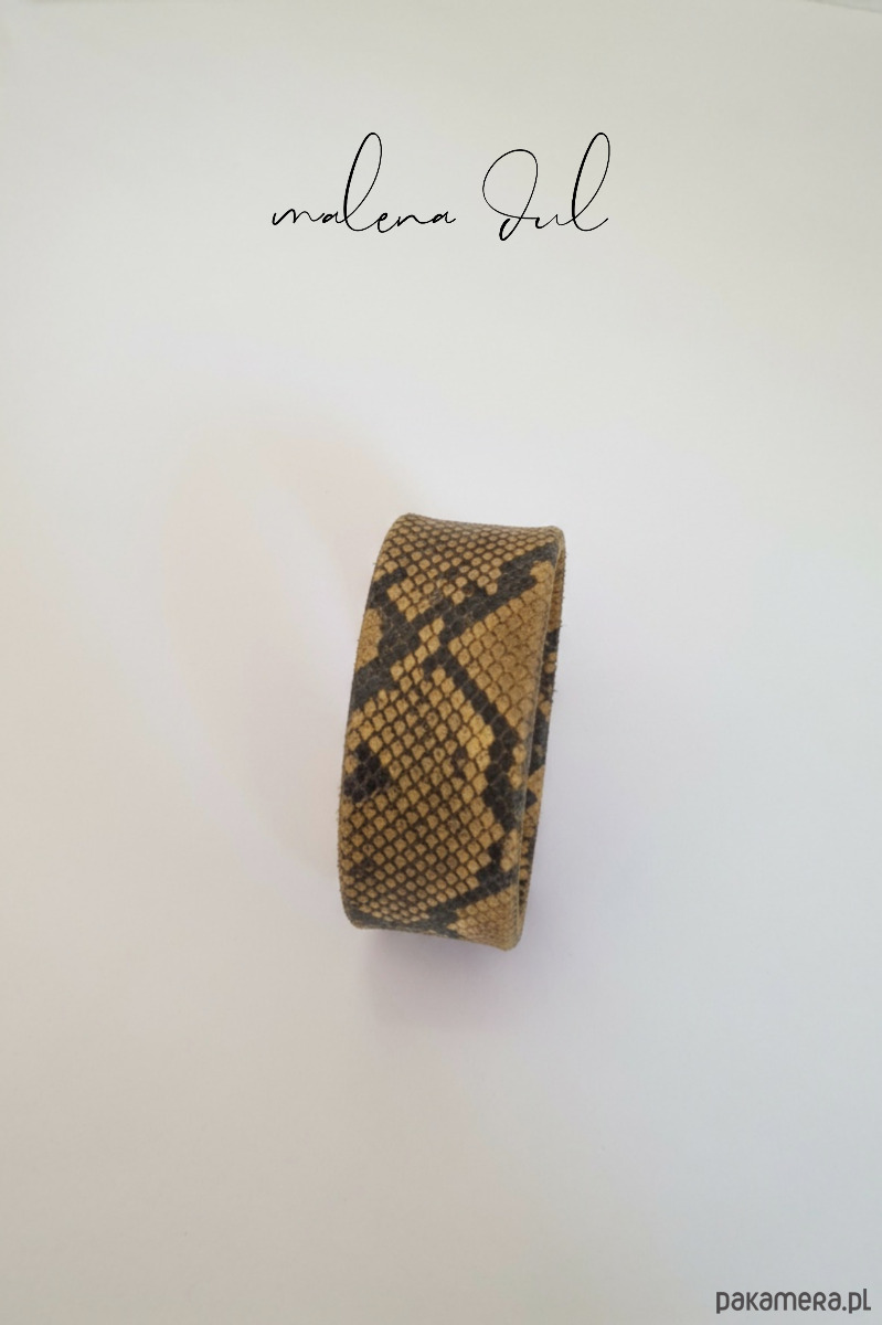 Bransoletka – wyjątkowa i ponadczasowa, wykonana ręcznie ze skóry naturalnej w eleganckim musztardowym odcieniu żółtego w ciekawy wzór skóry węża. Wyrazisty design sprawia, że z łatwością staje się głównym akcentem stylizacji, dodając jej charakteru i wyrafinowanej elegancji. Szyta mocną nicią kaletniczą.