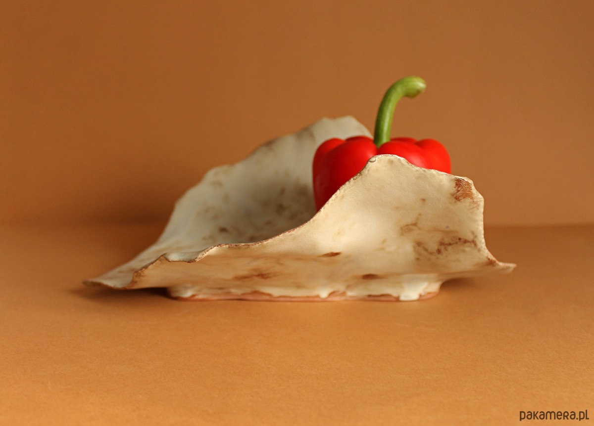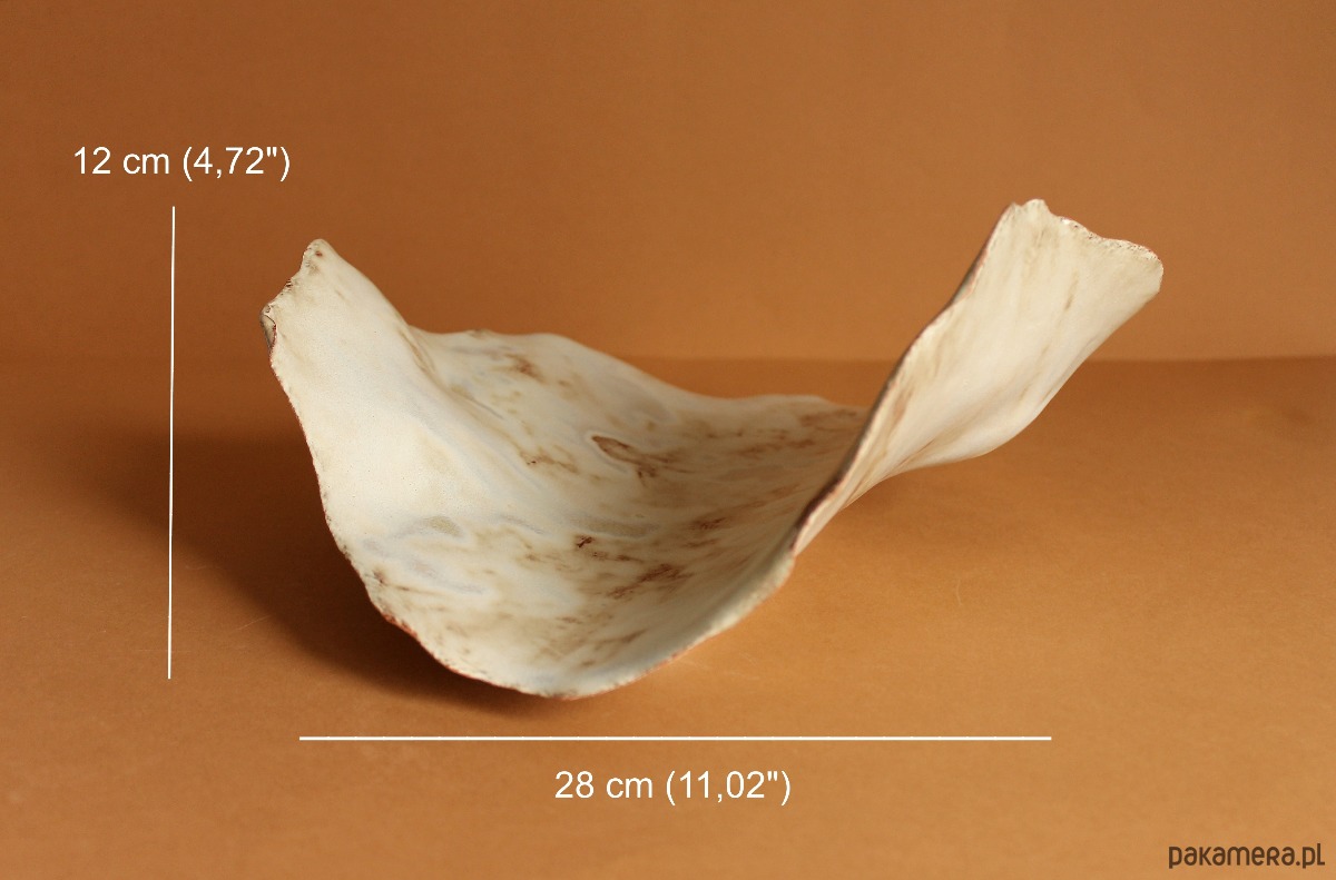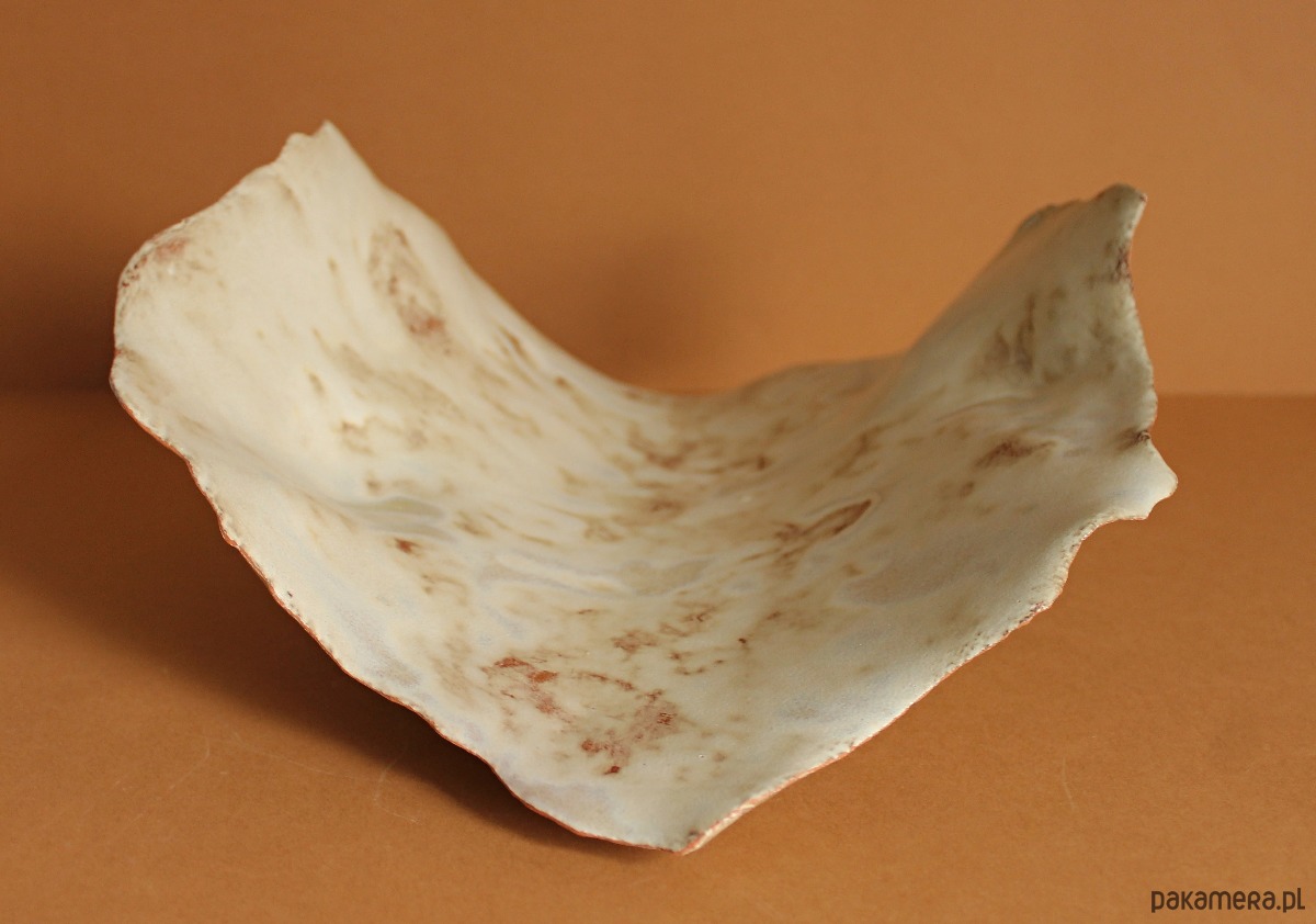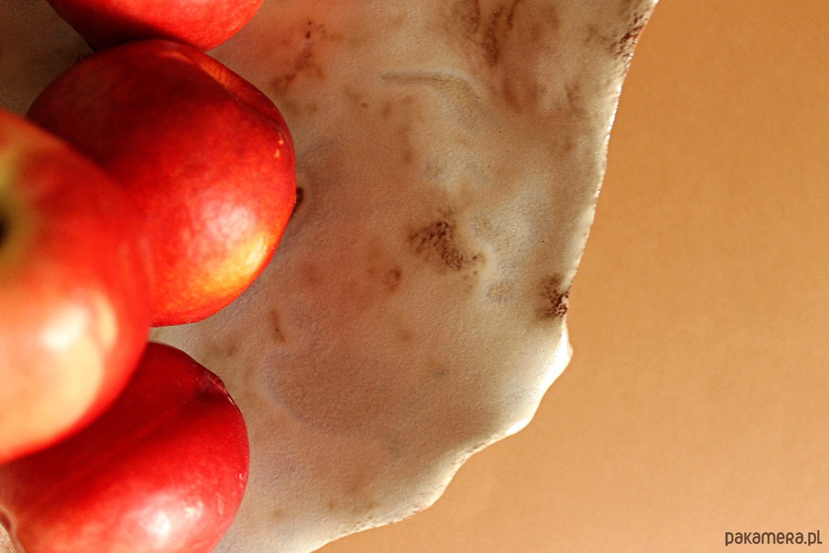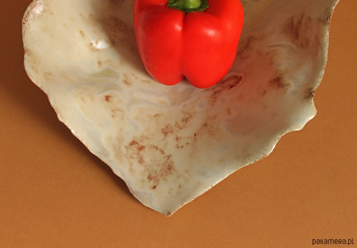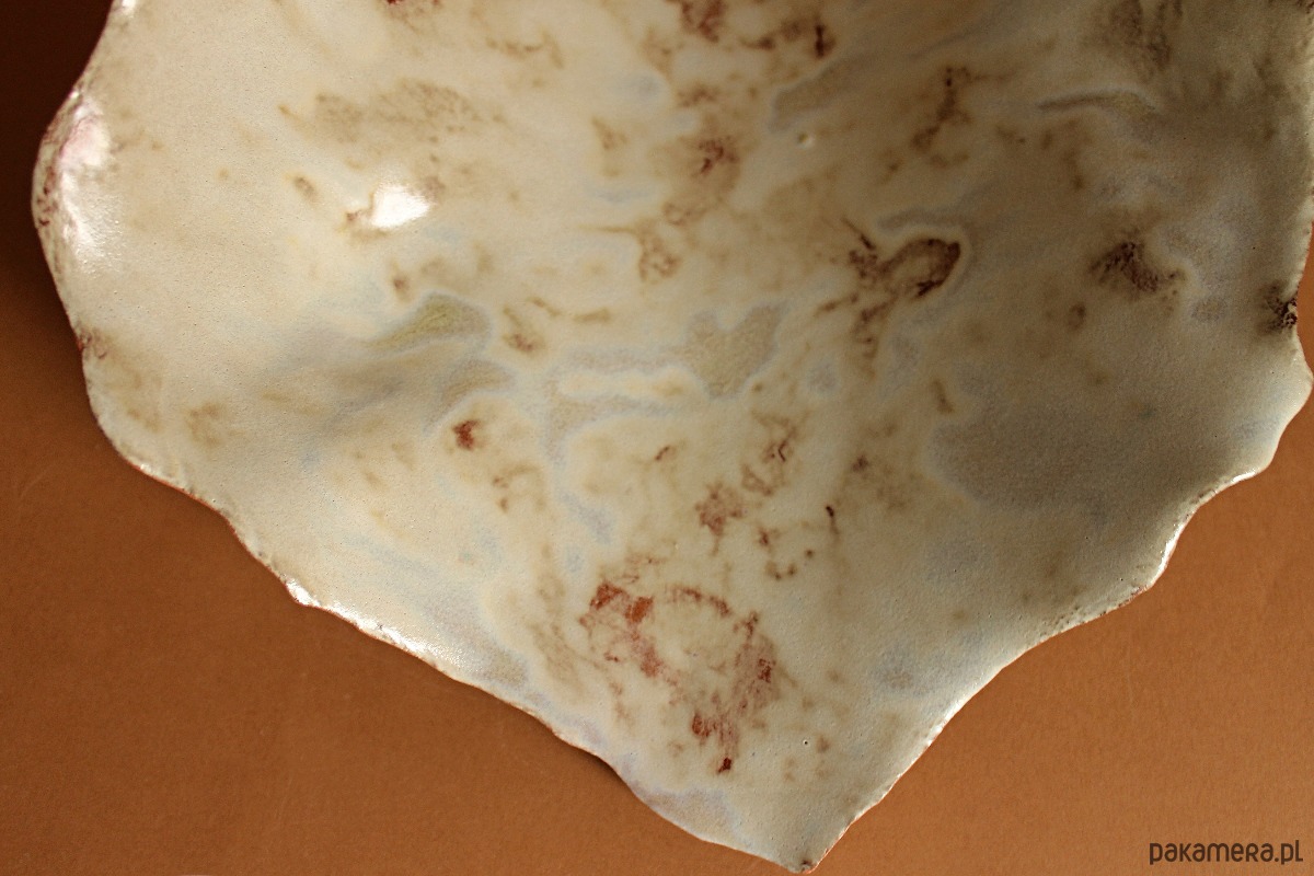 Talerz ceramiczny wykonany z wysokotemperaturowej czerwonej gliny. Pokryty wysokiej jakości niemieckim szkliwem. Talerz ma unikalny zakrzywiony kształt. Dzięki temu stanie się wspaniałą ozdobą Twojego domu. Możesz go użyć do dekoracji salonu, kuchni w jadalni, a może nawet łazienki. Talerz na jagody, owoce. Piękna ozdoba do wypieku lub chleba. Prezent dla przyjaciół na parapetówkę lub przeprowadzkę, rodzinny prezent na rocznicę ślubu.