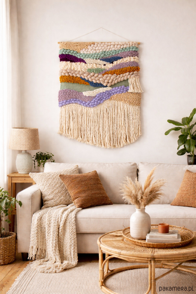 Duża tkana dekoracja ścienna idealna do salonu lub sypialni