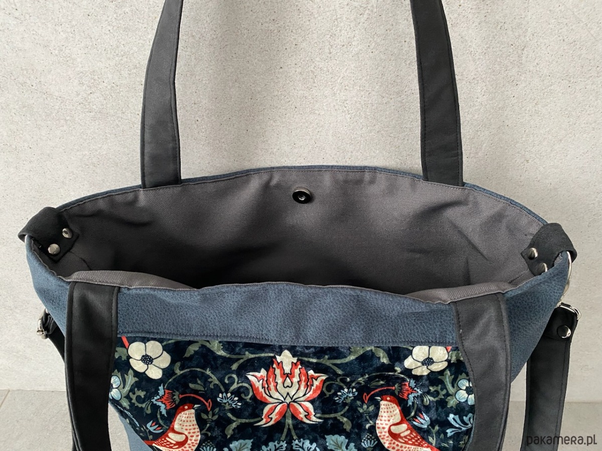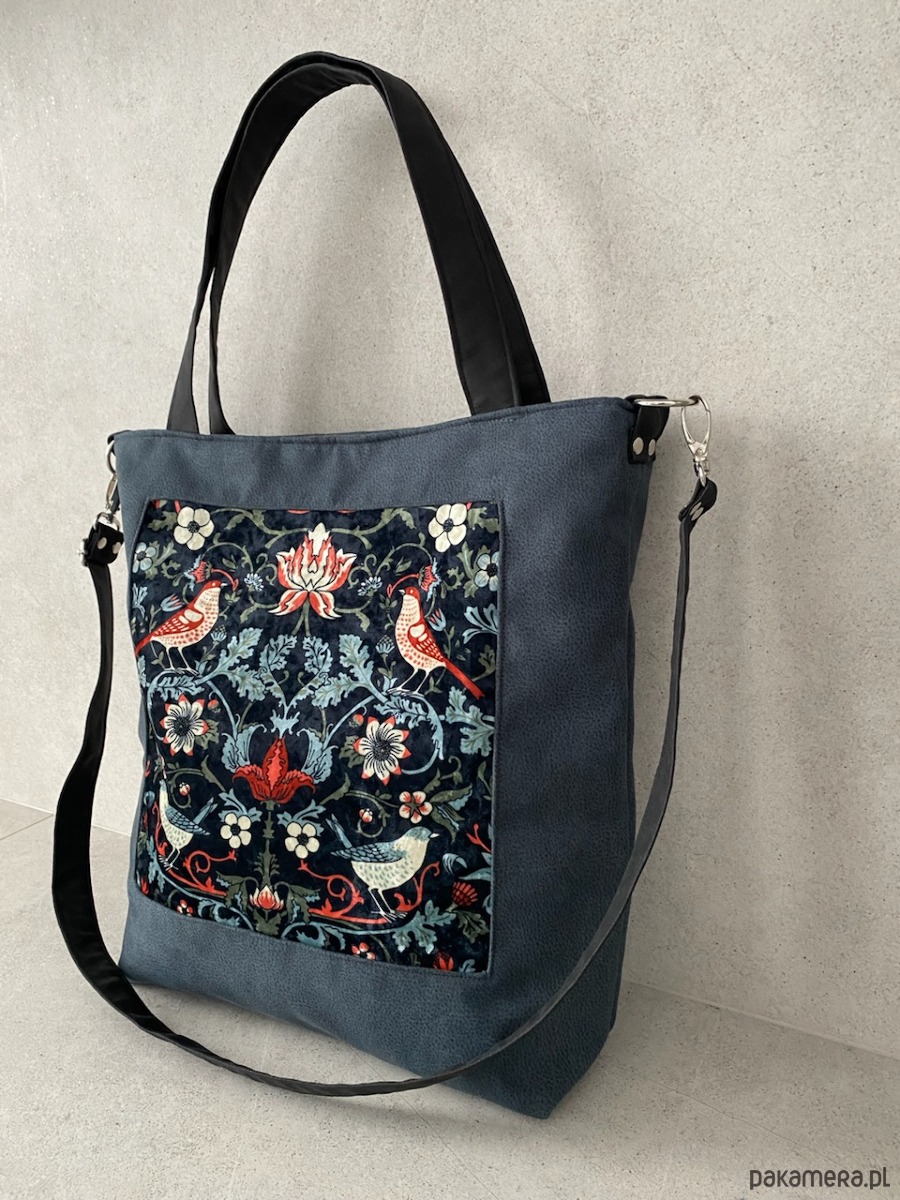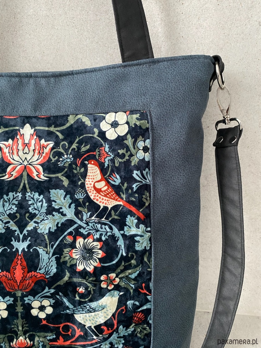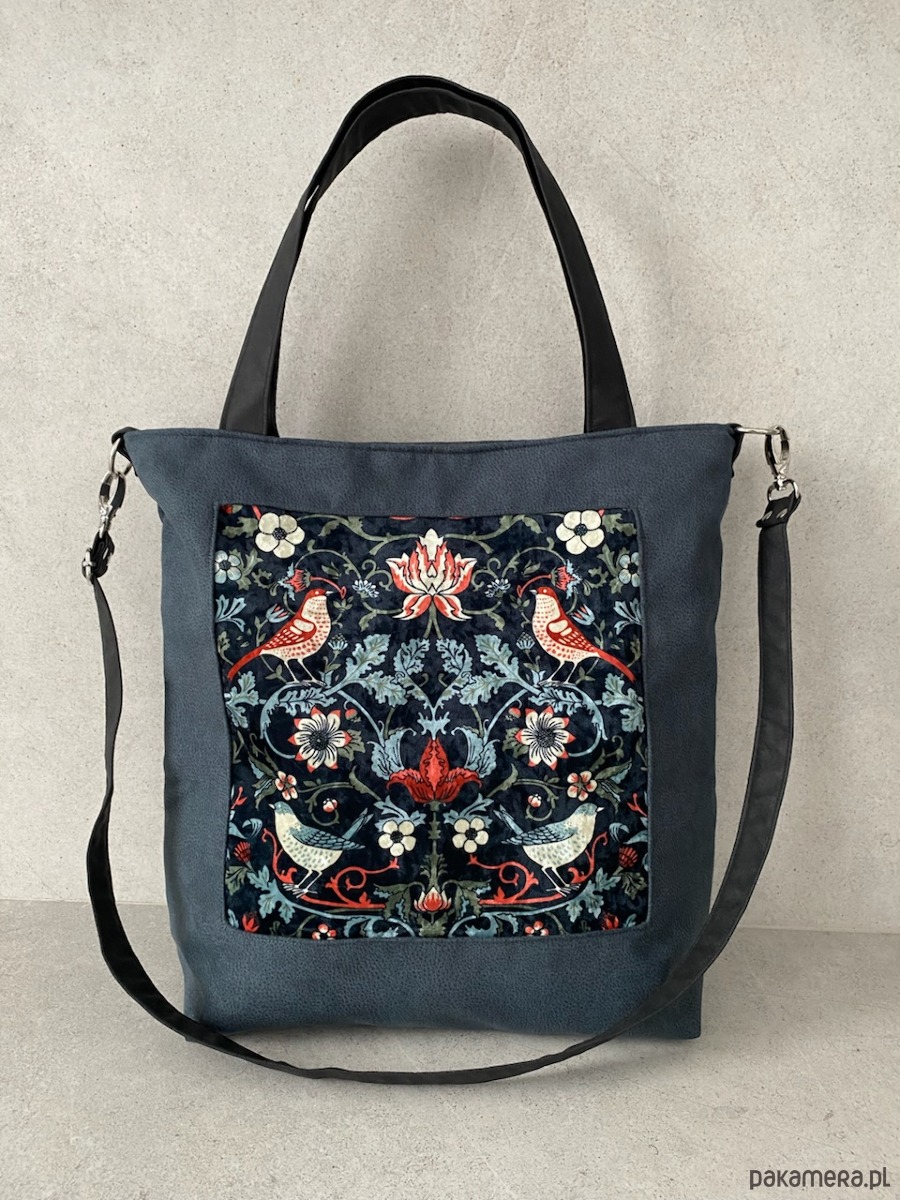 Przepastna torba z ornamentem wykonana z nubuku syntetycznego z printem na welurze.