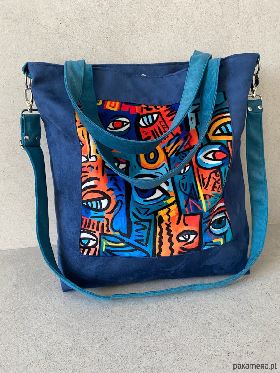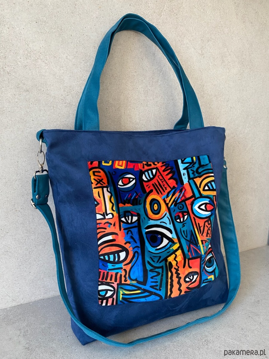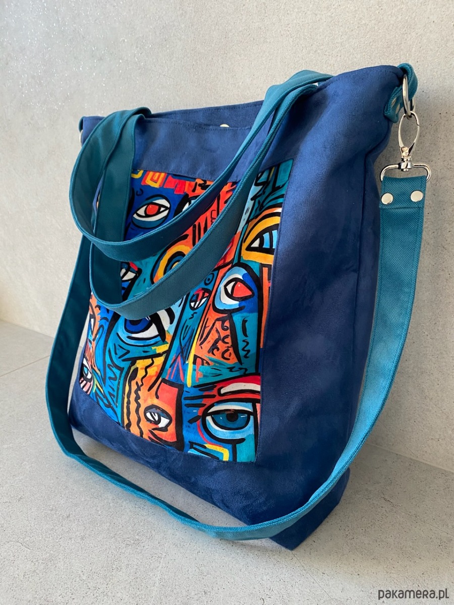 Przepastna torba z zamszu syntetycznego z printem na welurze.