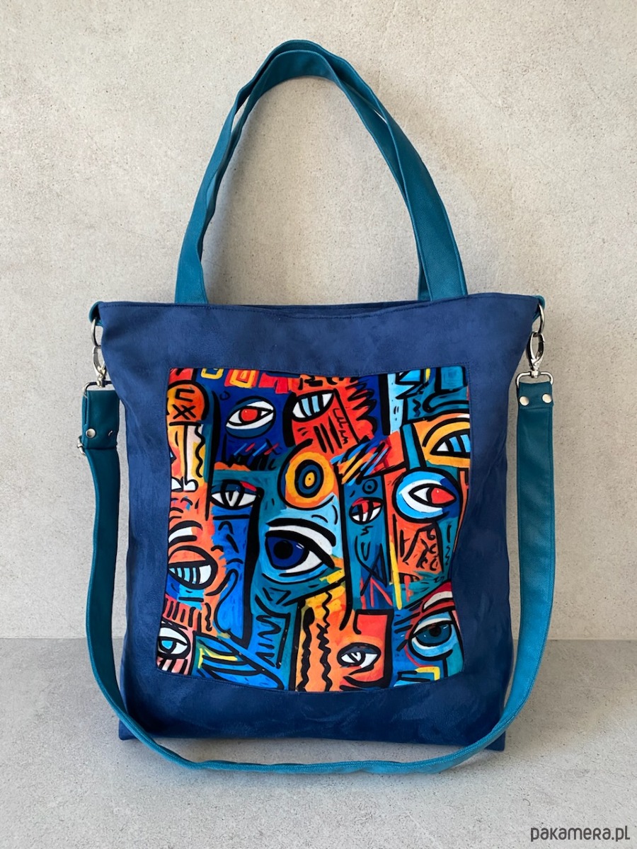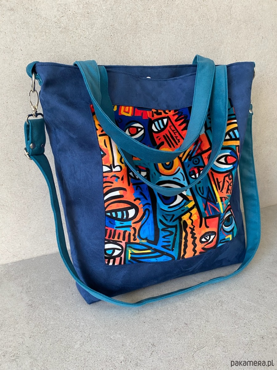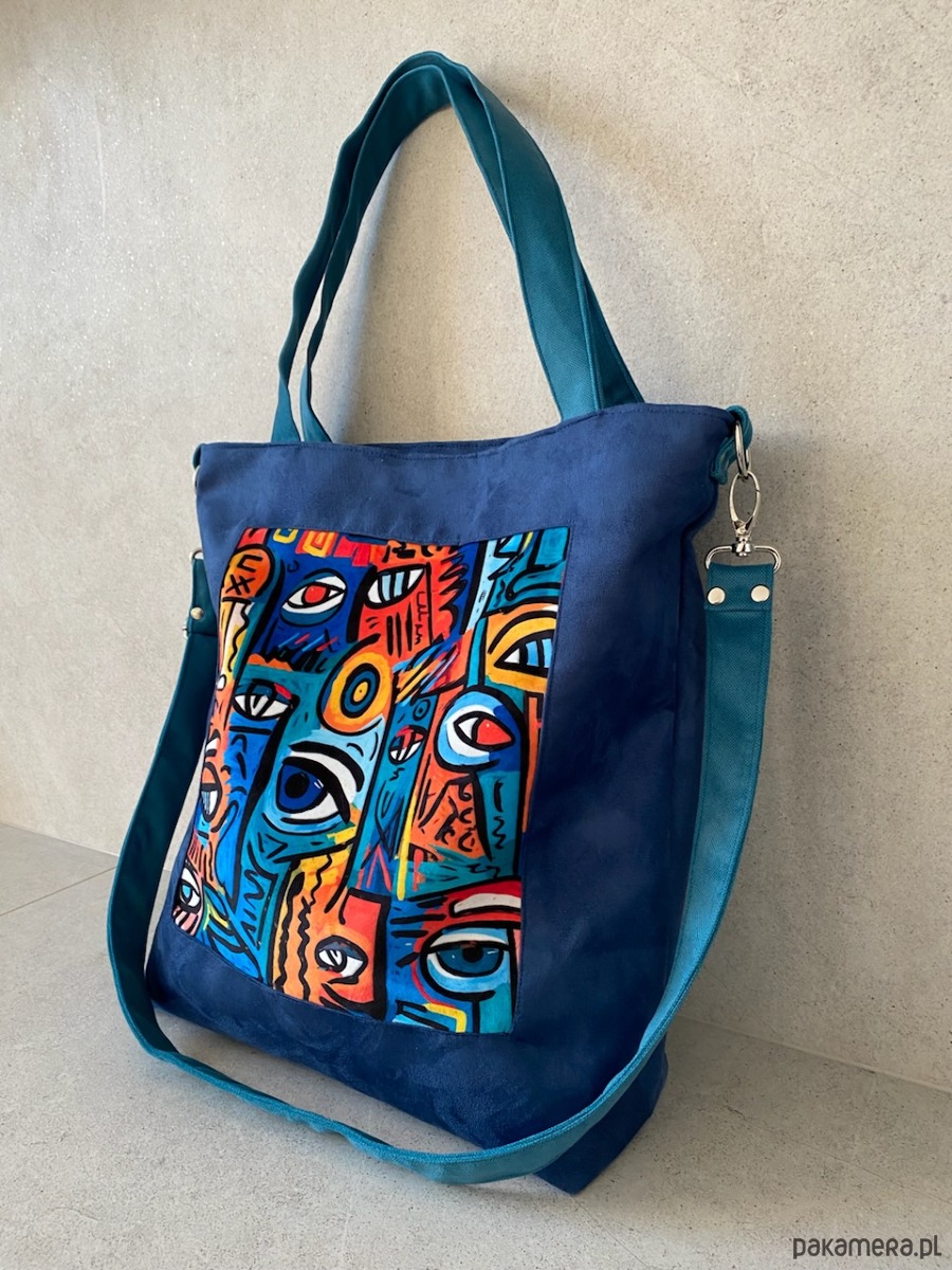 Przepastna torba z zamszu syntetycznego z printem na welurze.