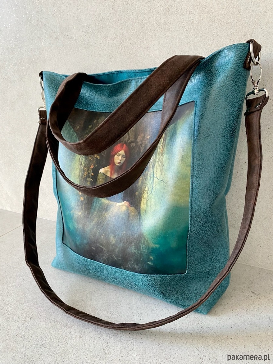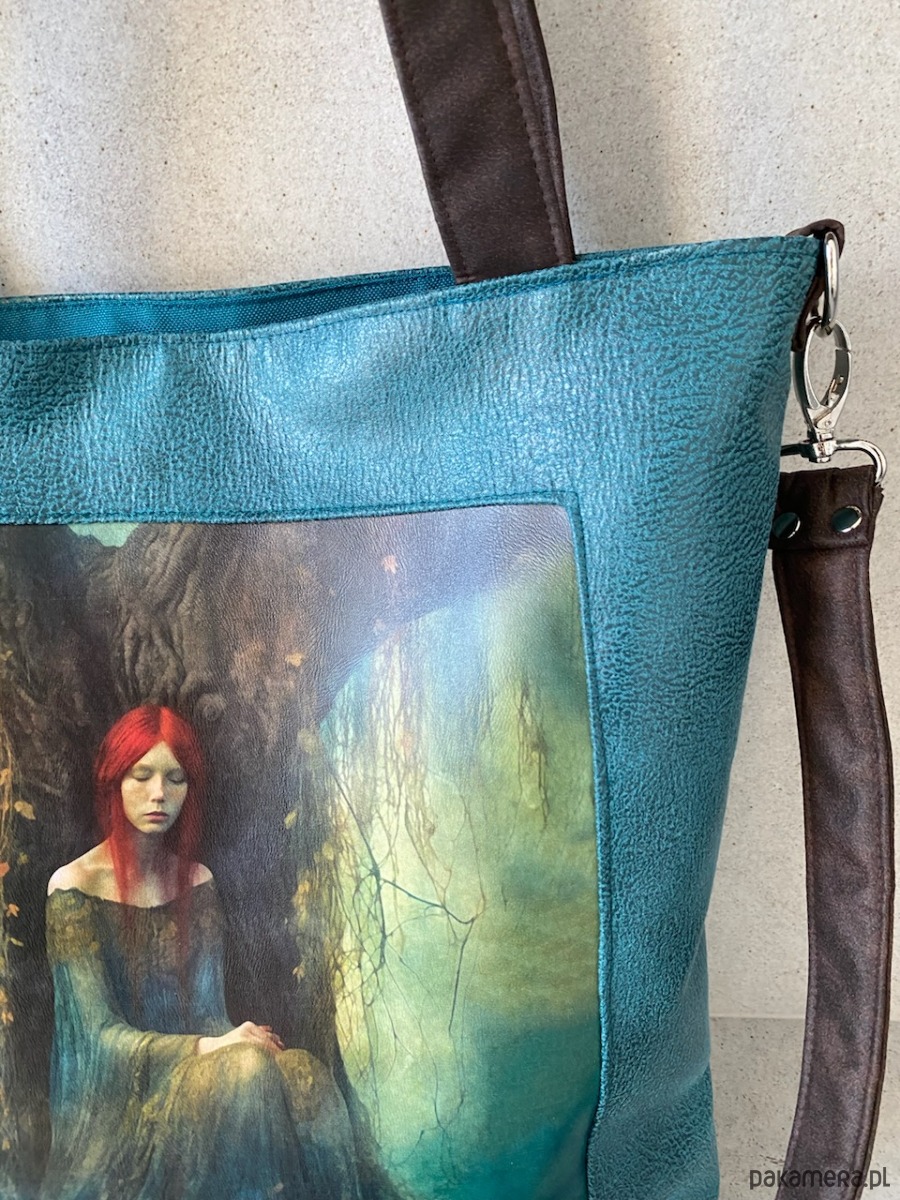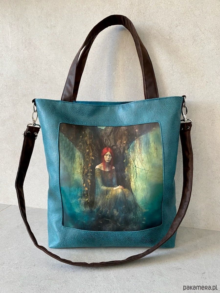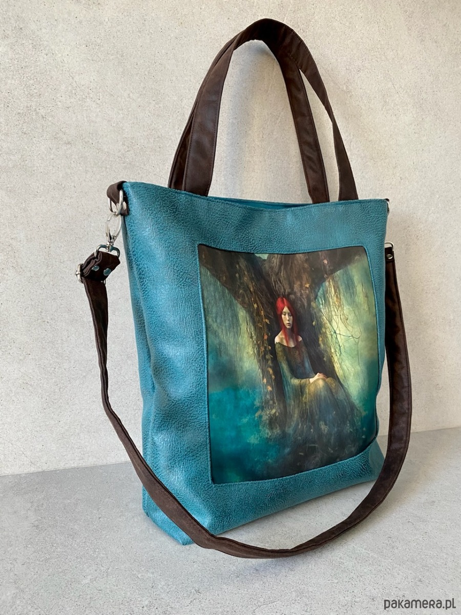 Przepastna torba z serii „Duchy lasu” wykonana ze skóry syntetycznej z printem na skórze ekologicznej.