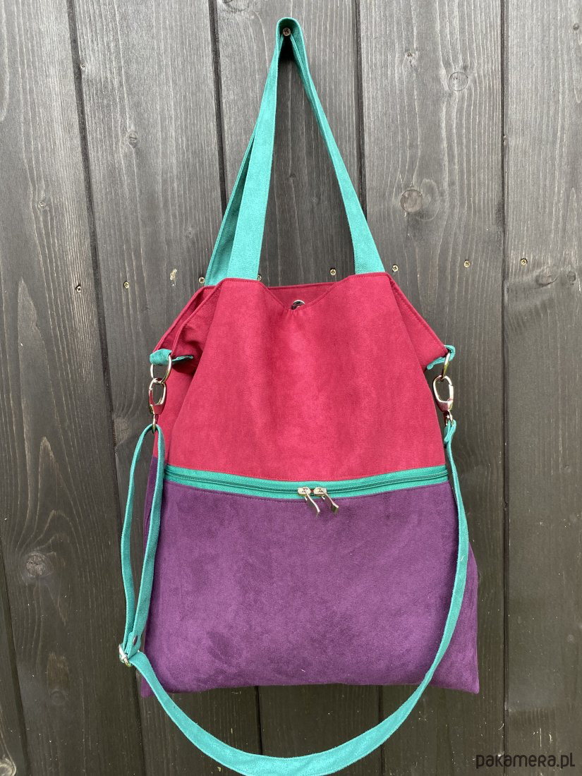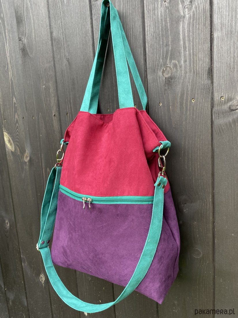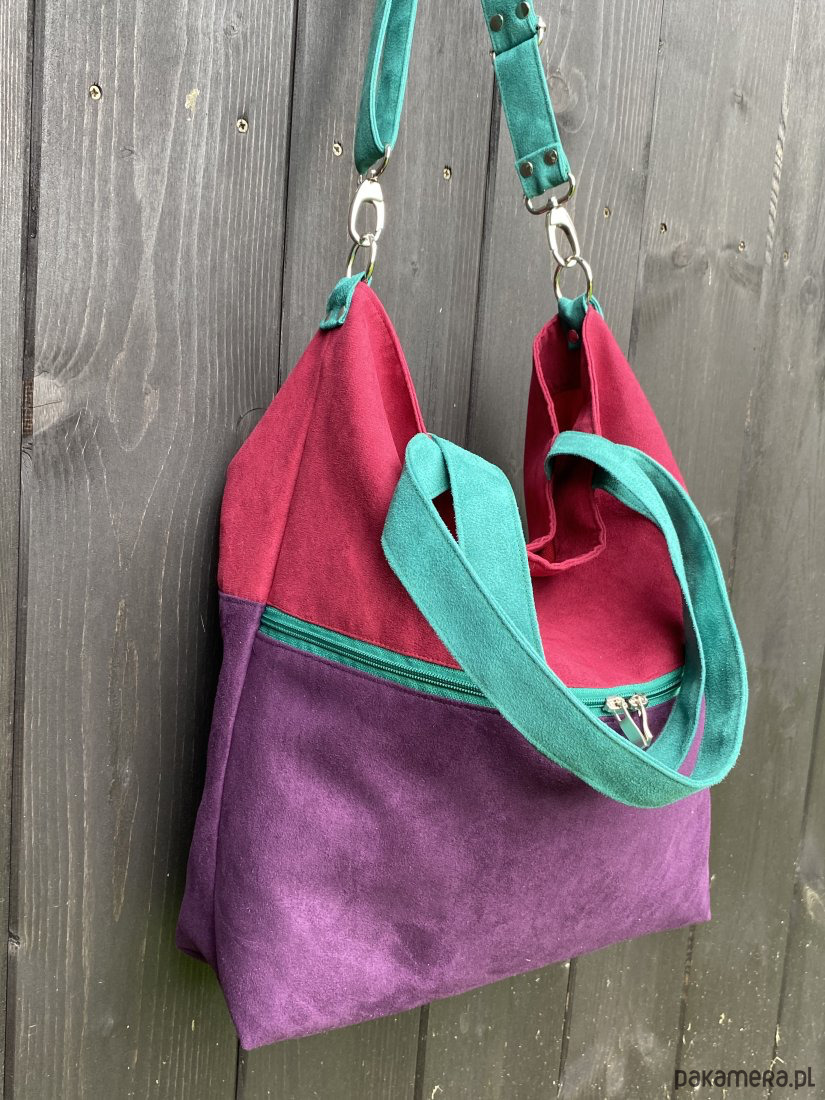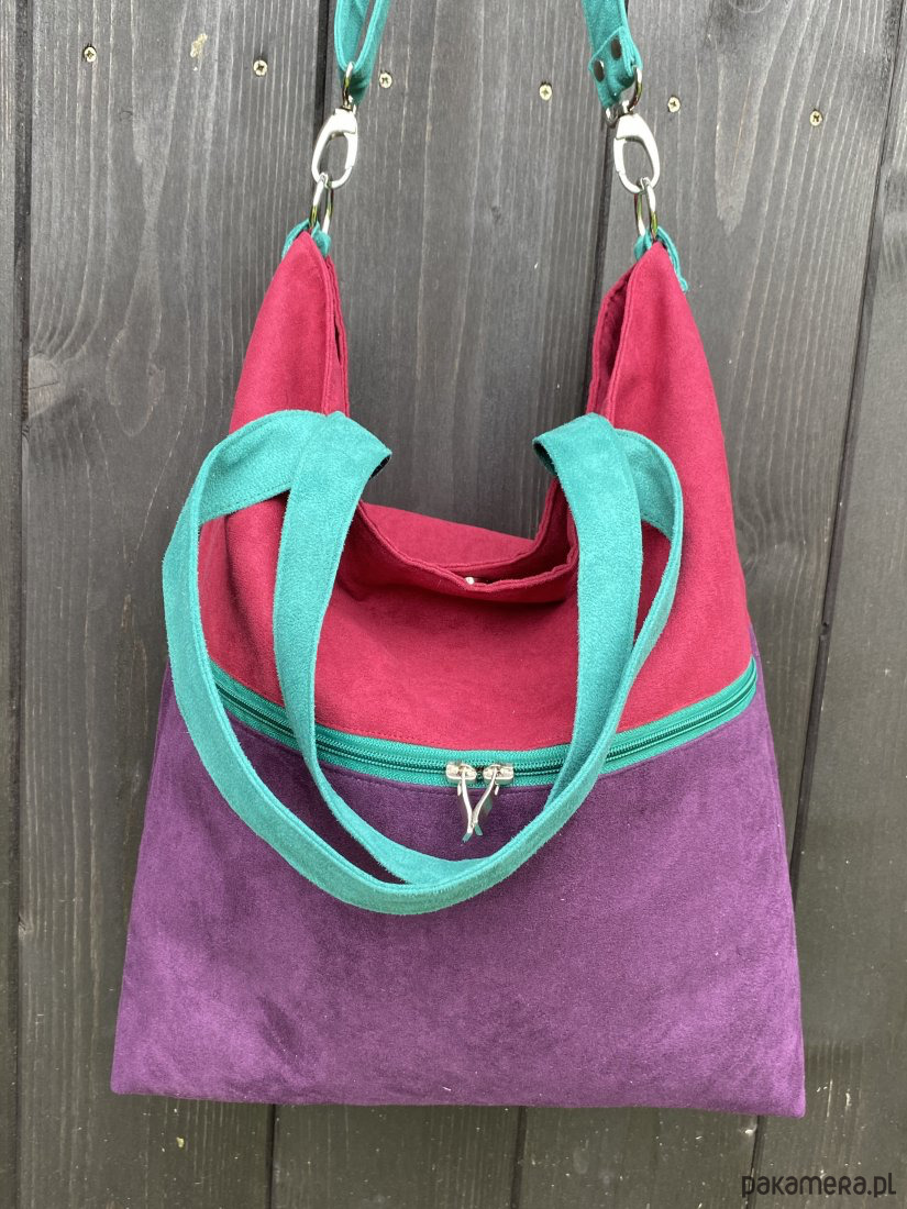 Duża torba na ramię z zapinaną kieszenią -fiolet,burgund,jadeit