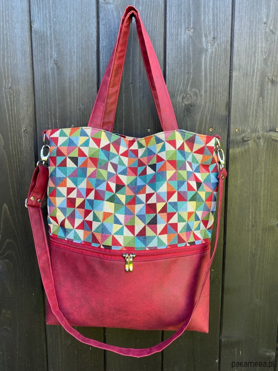 Duża torba na ramię z zapinaną kieszenią - mozaika