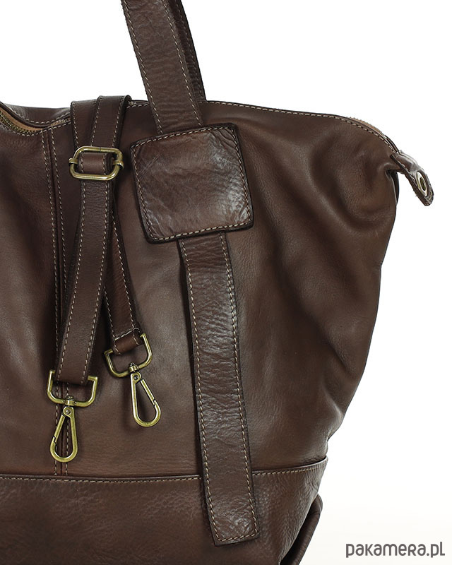 Ten model brązowej torby shopper wyposażony został w mocne, wygodne rączki oraz dodatkowy pasek do noszenia na skos, co zwiększa komfort podczas codziennych aktywności. Praktyczne kieszonki – zamykana na zamek oraz otwarta – ułatwiają organizację przechowywanych przedmiotów. .