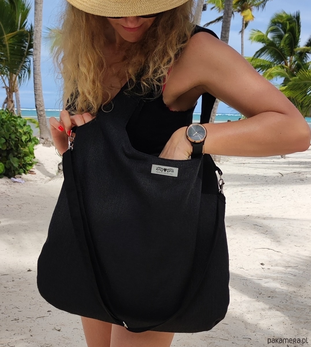Piękna duża torebka wykonana z plecionego, mocnego materiału,
