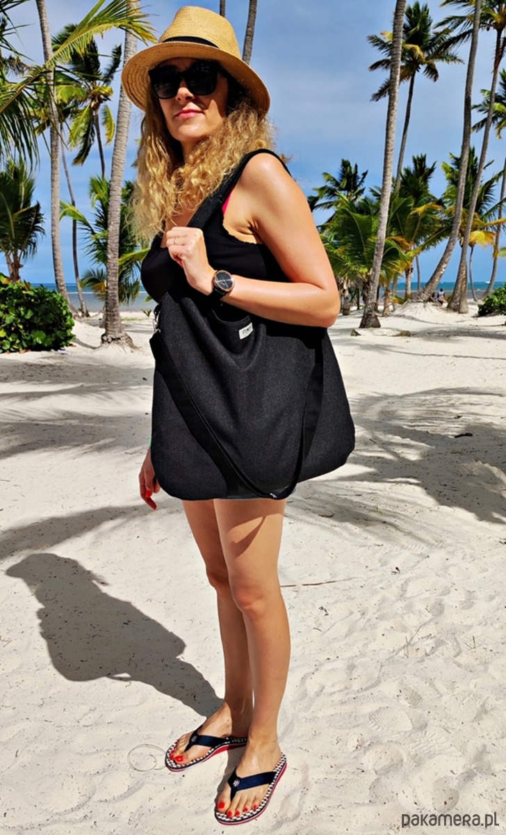 Piękna duża czarna torebka wykonana z plecionego, mocnego materiału,